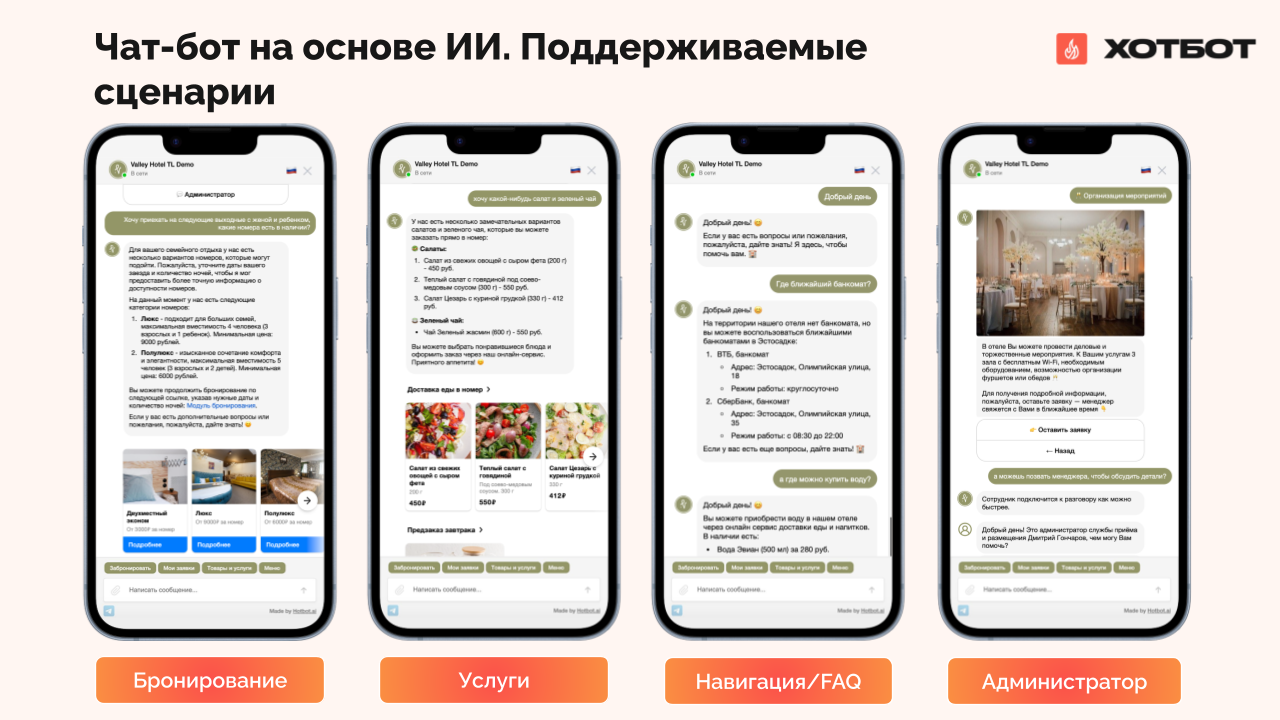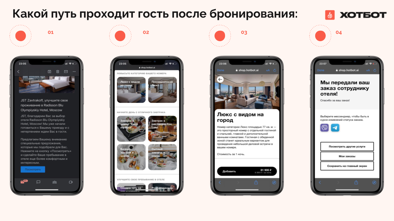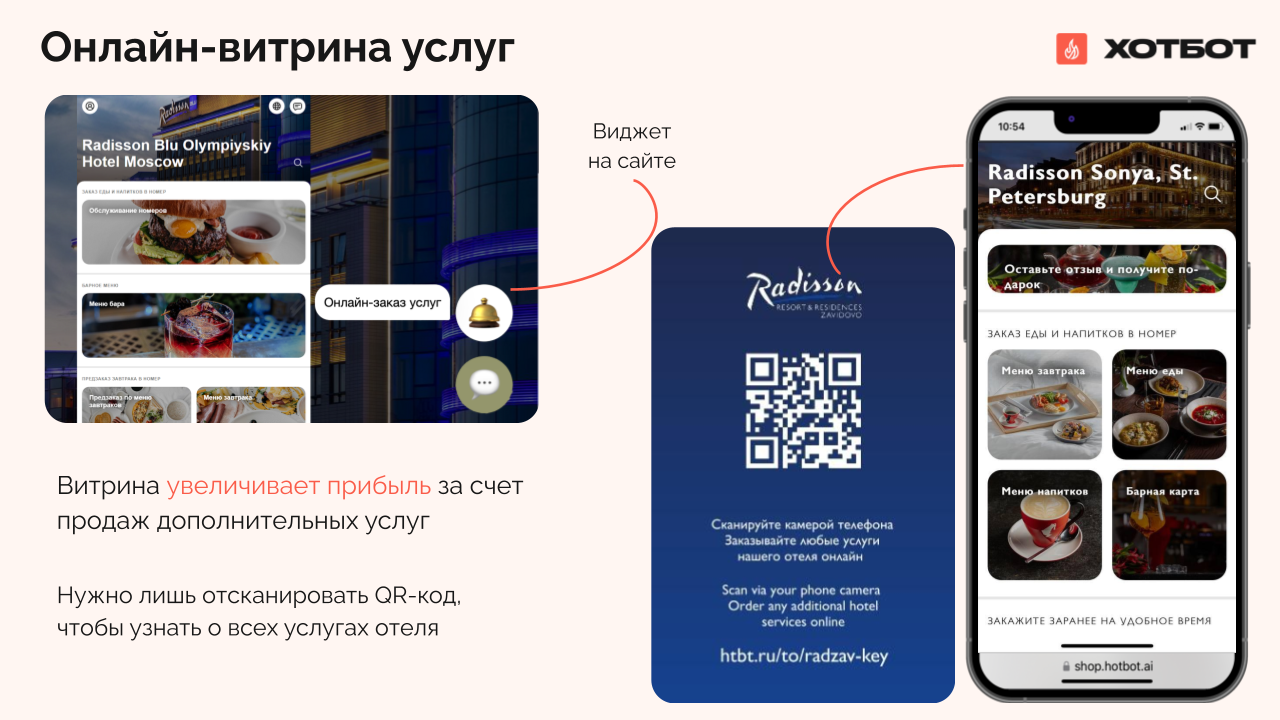 - Онлайн-витрина доп.услуг Хотбот. Это онлайн‑площадка, где гости могут: