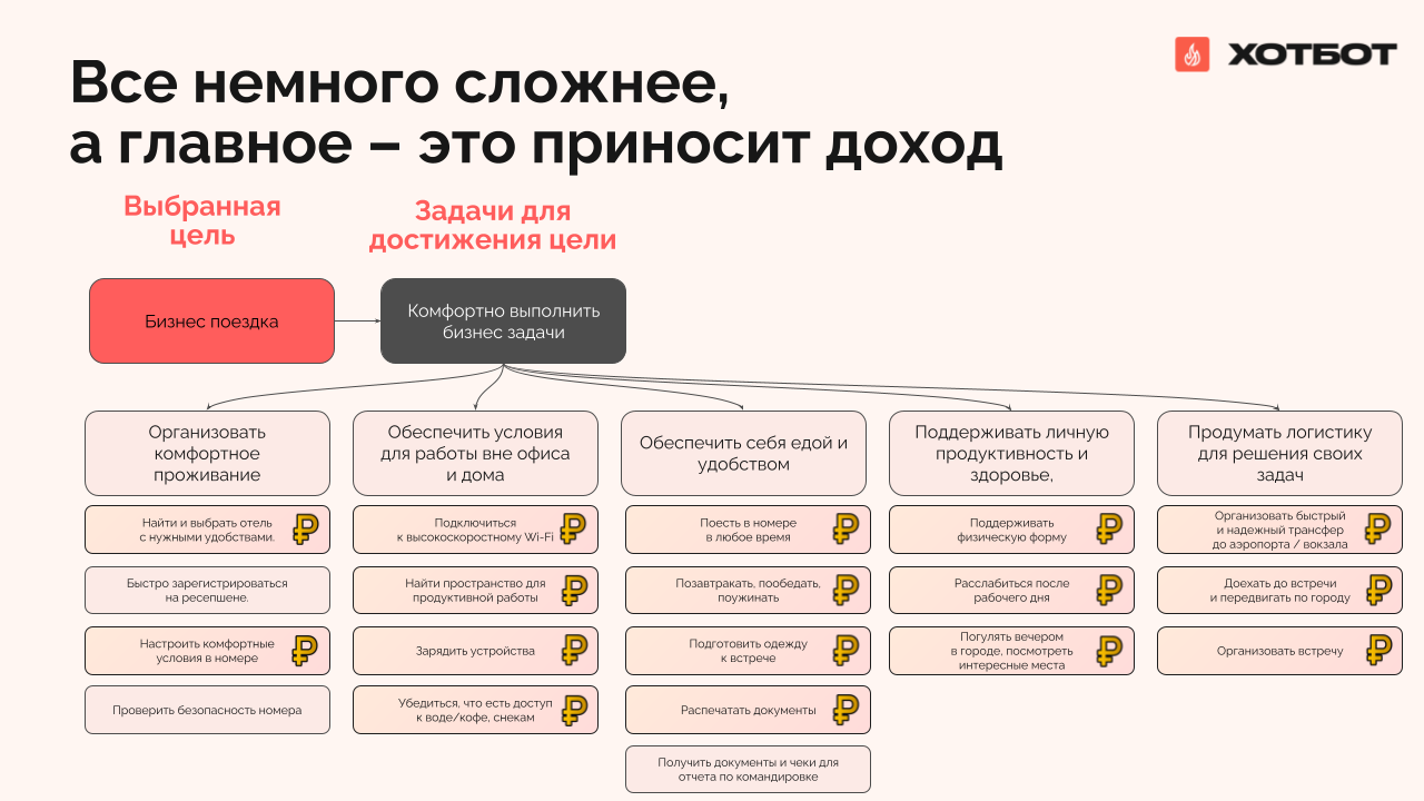 Сегодня успех отеля зависит от того, умеет ли он переупаковать продукт, т.е. вместо продажи номеров предлагать решение конкретных задач гостя. Разберем на примере бизнес‑путешественника MICE-сегмента.