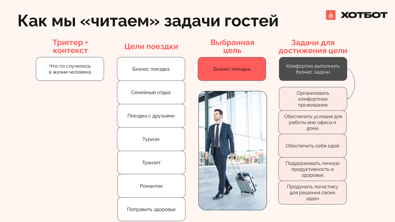 Не знаете с чего начать улучшение бизнес‑процессов? Запишитесь на консультацию Хотбот. Мы разберем ваш отель и предложим работающие решения. На примерах успешных кейсов вы увидите, как устроена цифровая витрина услуг и как работает чат‑бот. Получите четкий план действий от профессионалов — запишитесь на консультацию.