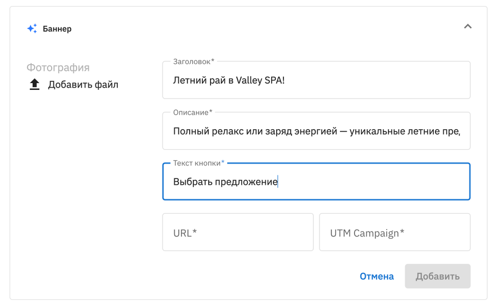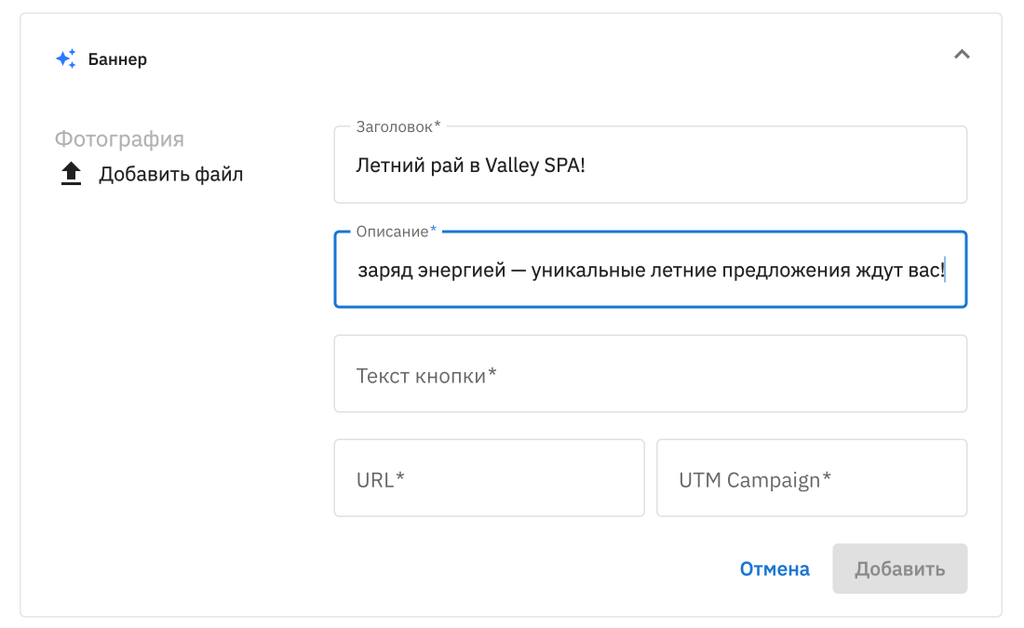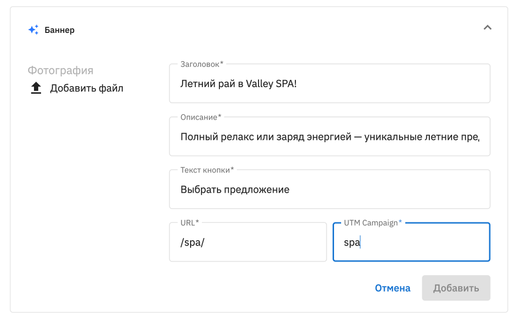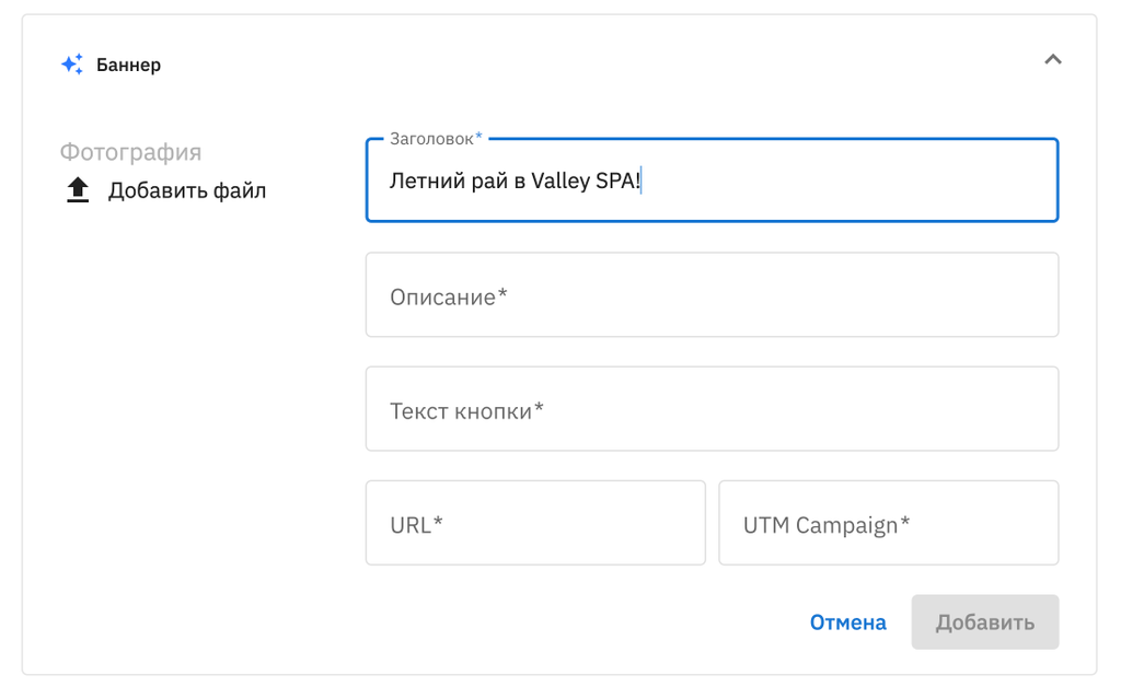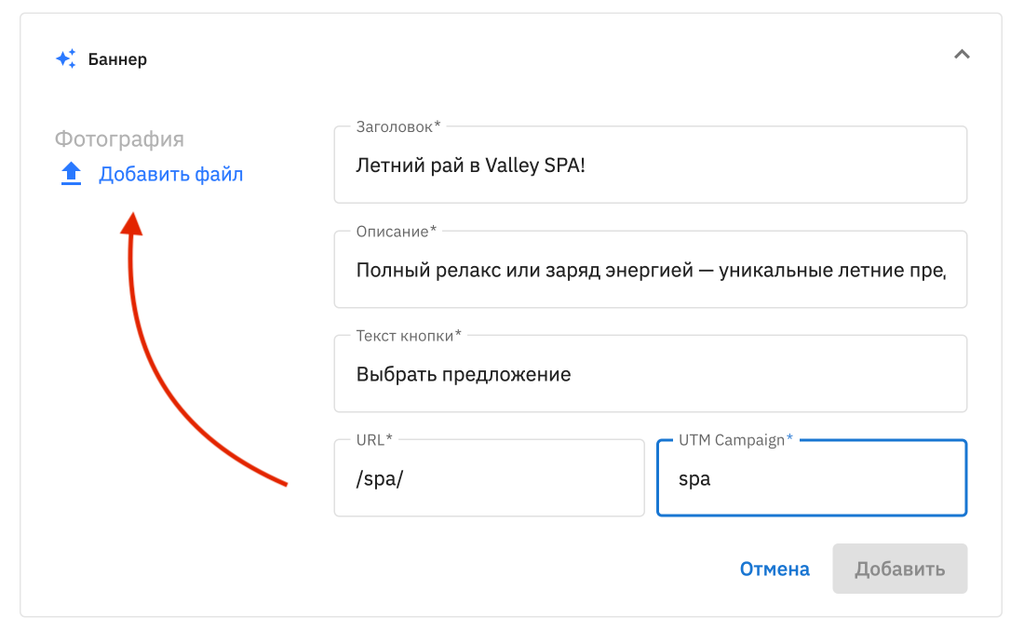 4. Добавьте Заголовок баннера.