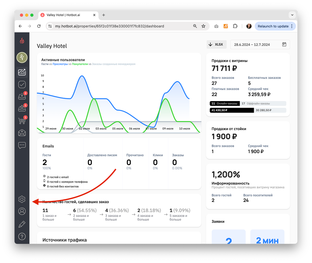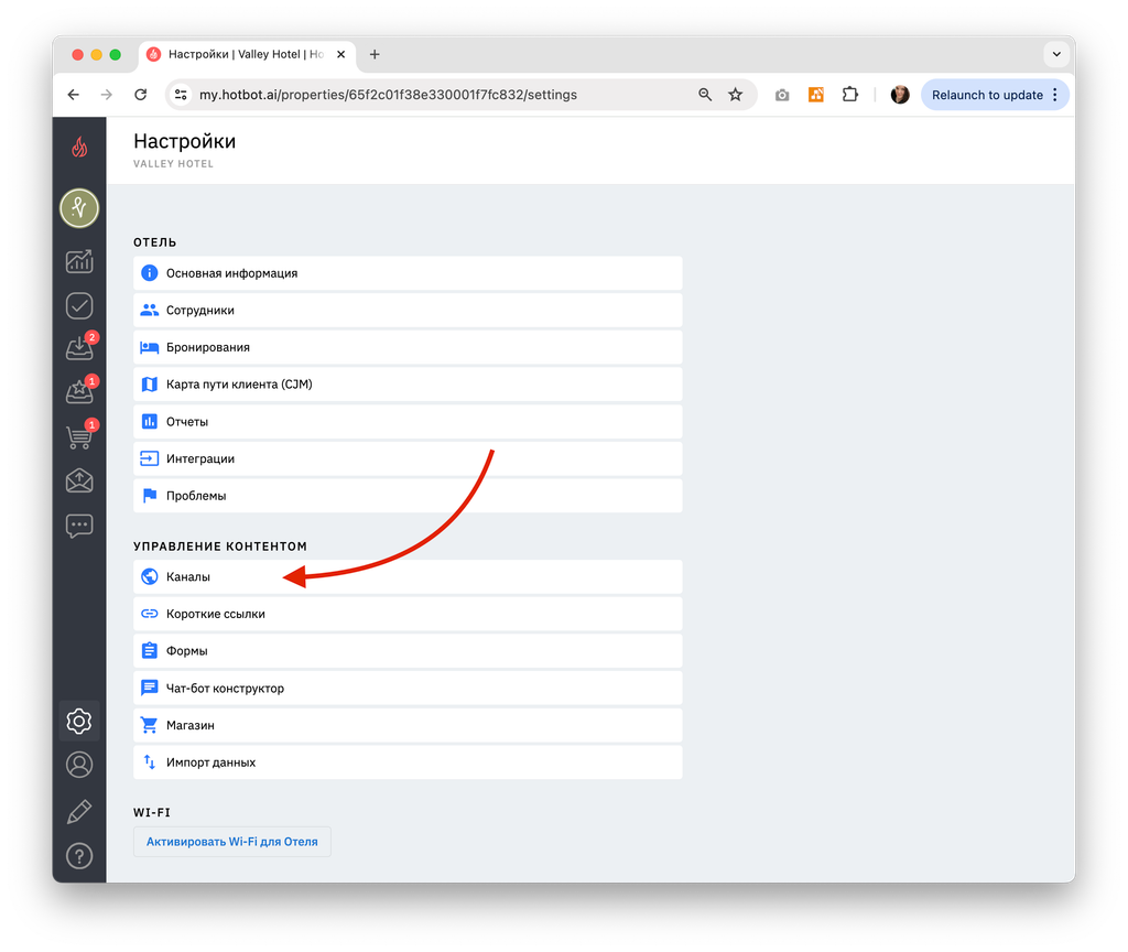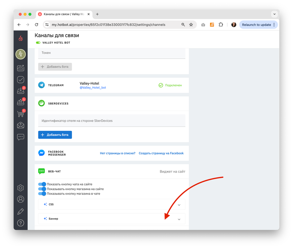 Для перехода к настройкам зайдите в свой личный кабинет на сайте Hotbot.ai или по прямой ссылке my.hotbot.ai.