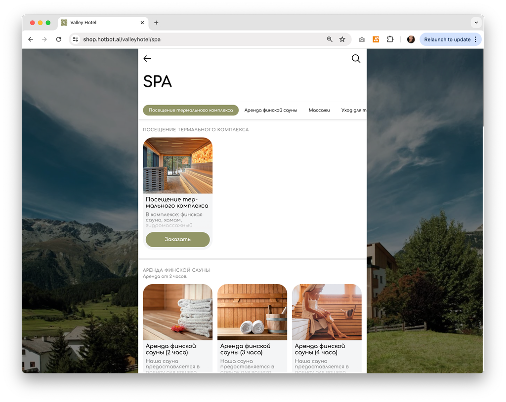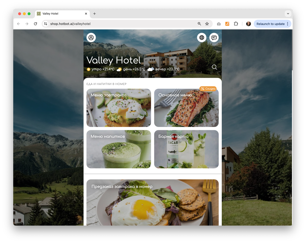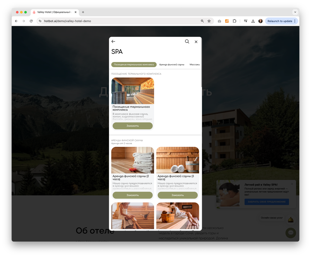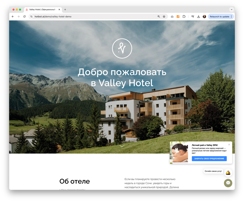 Пример можно посмотреть по ссылке: https://hotbot.ai/demo/valley-hotel-demo