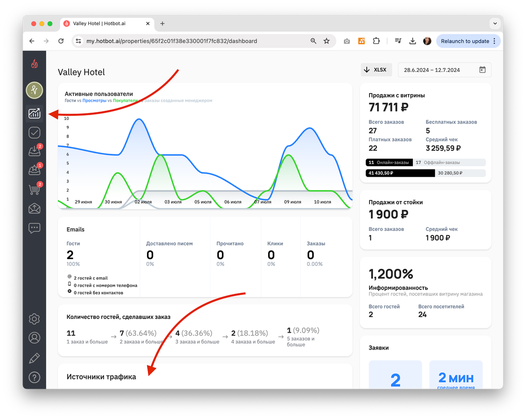 Статистика переходов и конверсии в заказы появятся в Источниках трафика на странице статистики в личном кабинете.