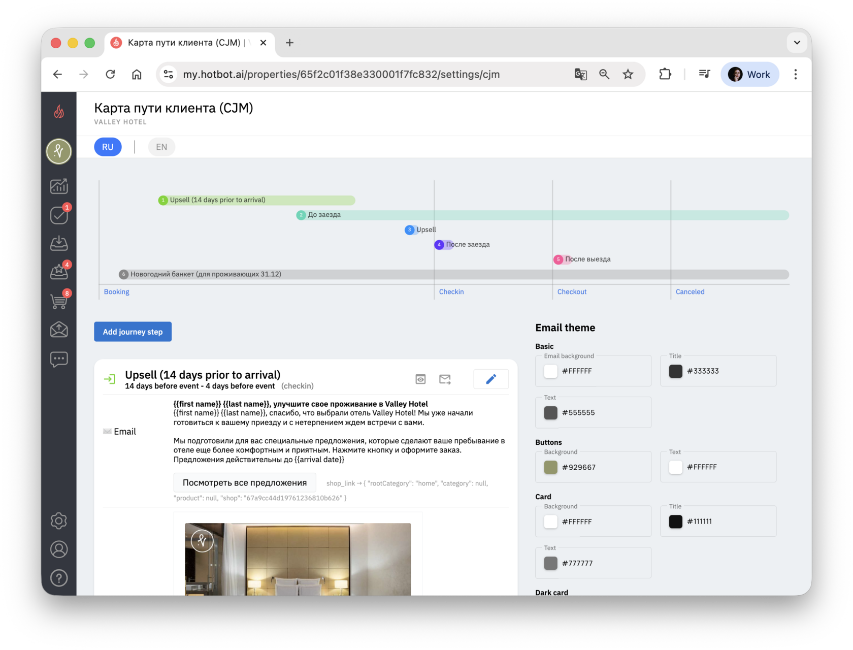 Отдельно можно настраивать письма UP ROOMS. Это дополнительные письма, которые отправляются до заезда, чтобы предложить гостю улучшение номера и особые услуги.