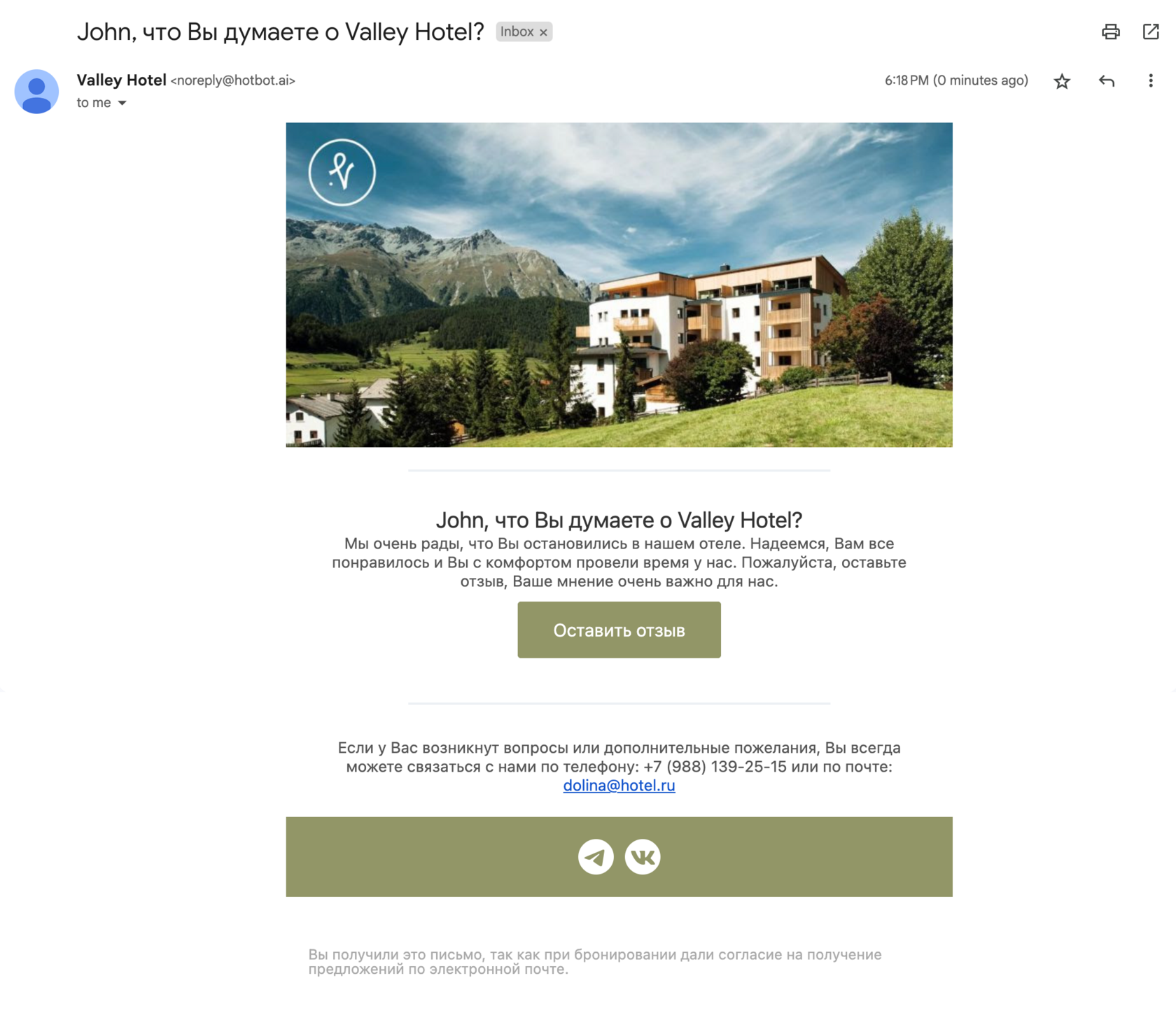 ▼ опционально — дополнительные письма, собранные для вашего отеля (например, сезонная рассылка).