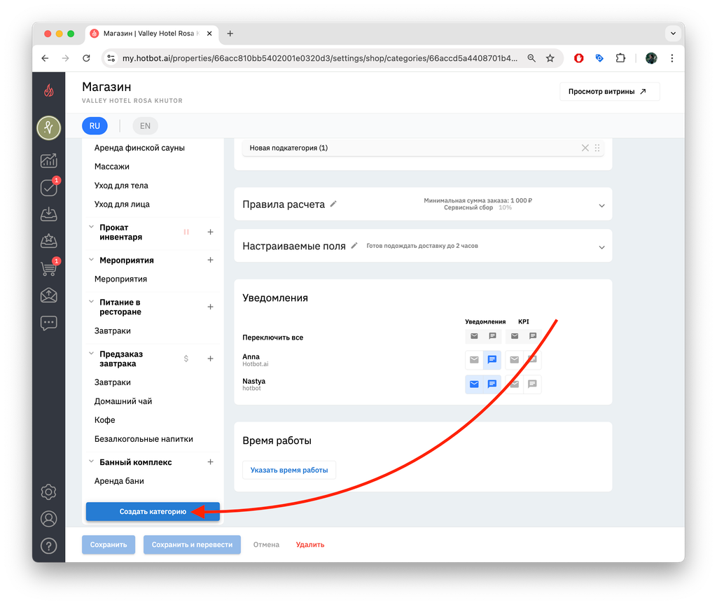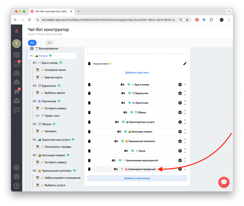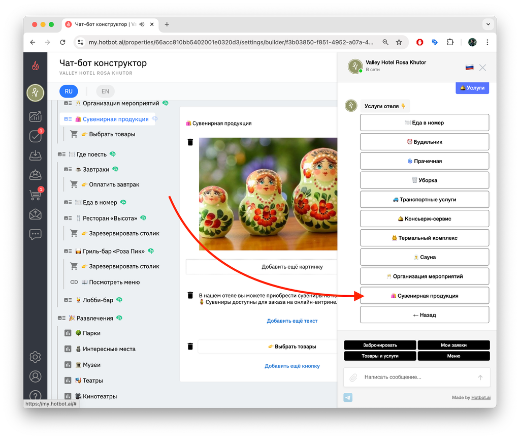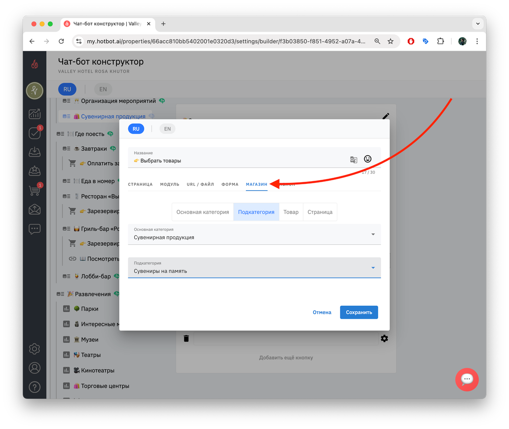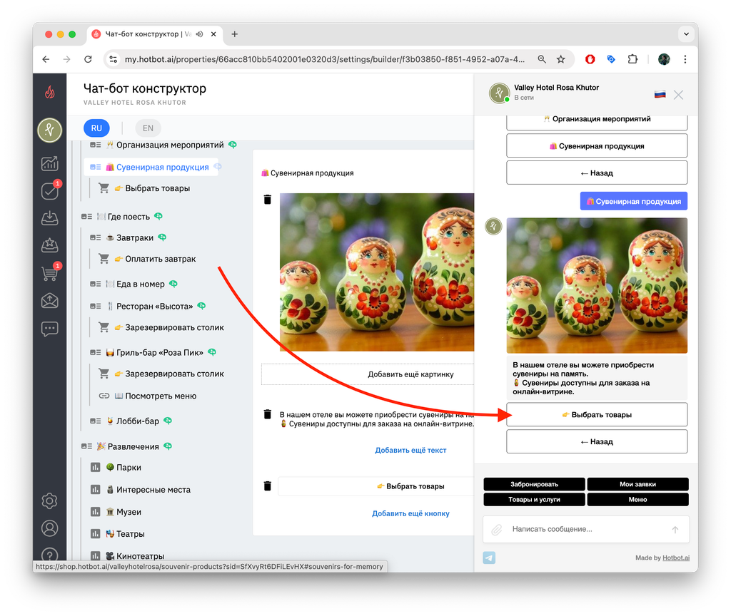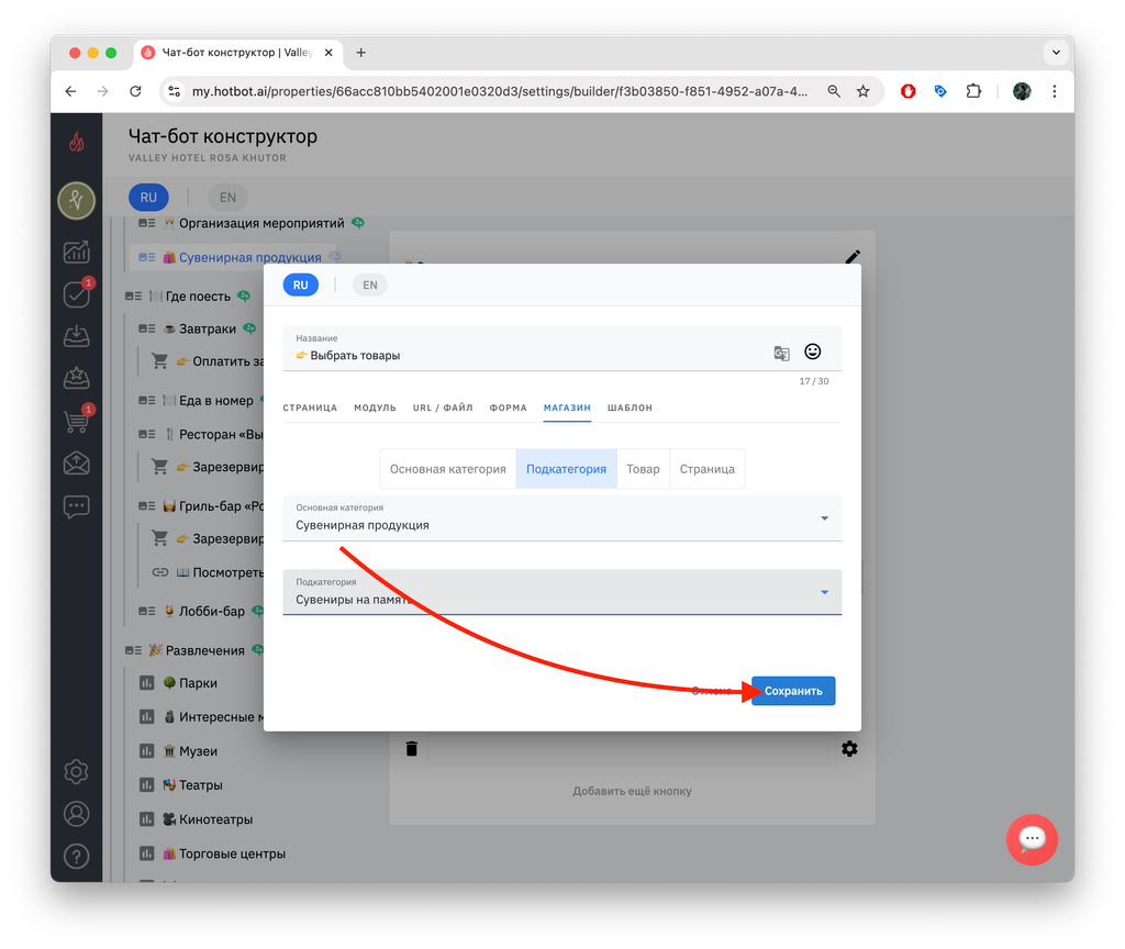 Управление контентом магазина и отправьте запрос в службу поддержки по кнопке ❓ в нижнем левом углу личного кабинета или на support@hotbot.ai.