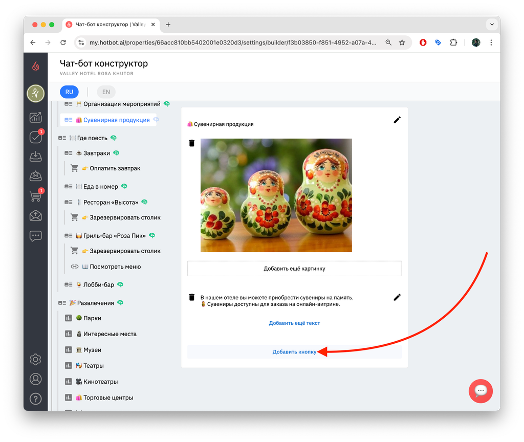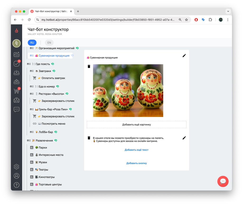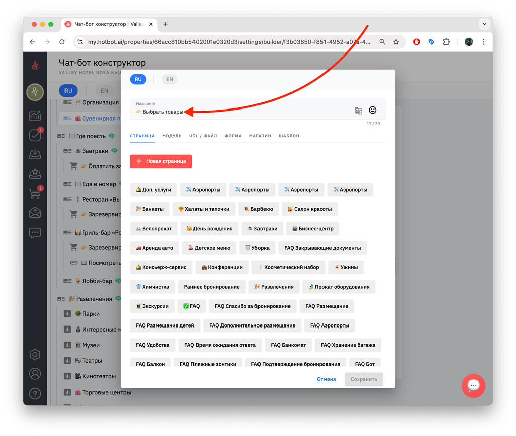 После создания нового раздела его необходимо автоматизировать, чтобы гости смогли найти информацию по запросу в чате, а не через меню.