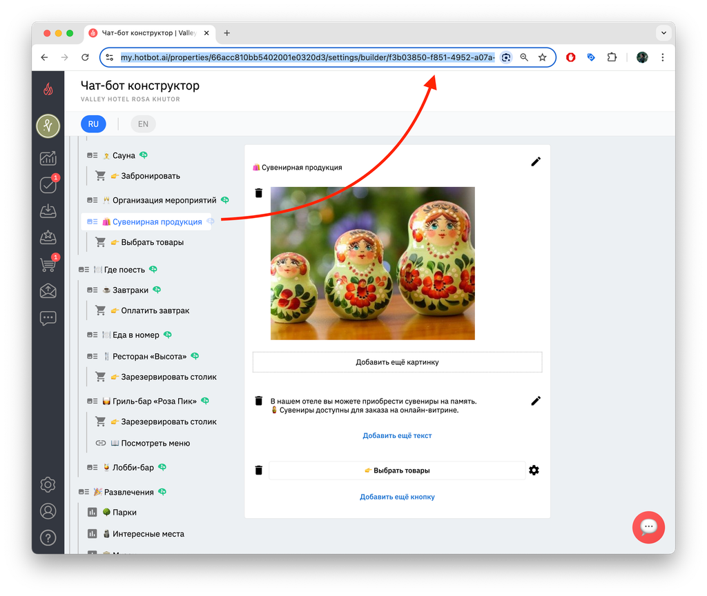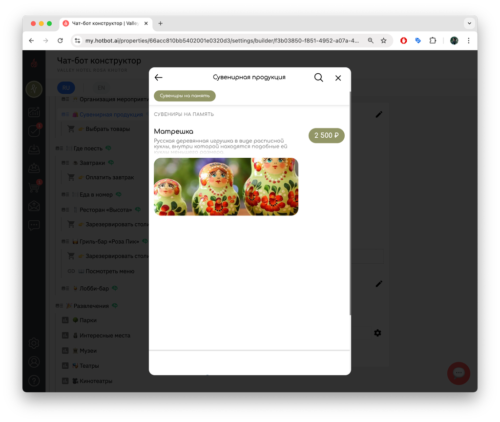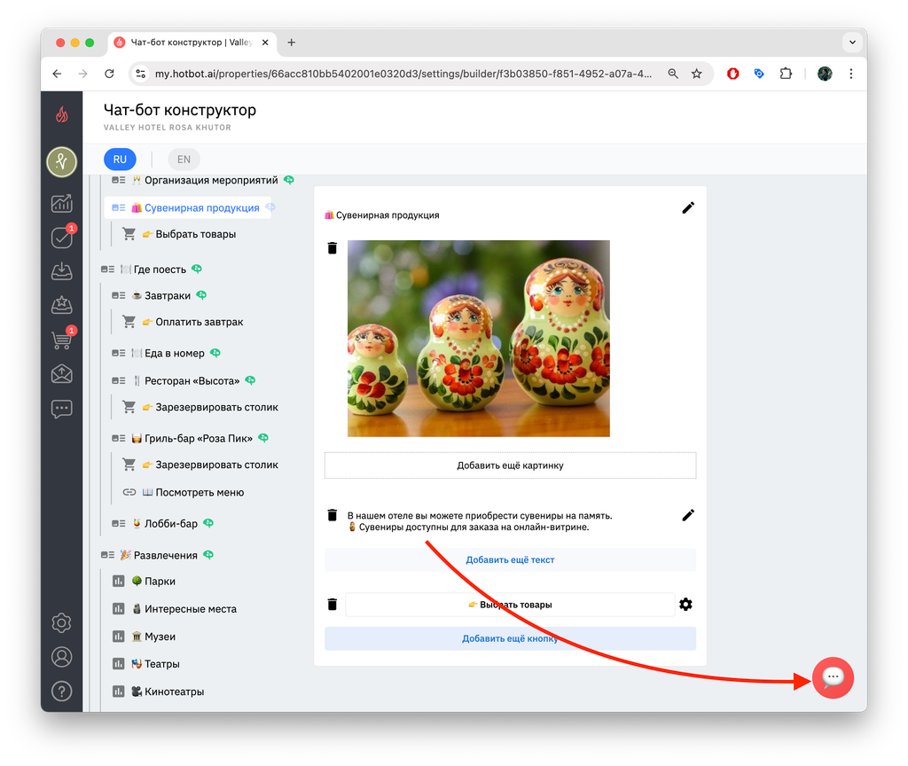 Чтобы гости могли легко находить информацию о комиссионных товарах в чат-боте, необходимо внести данные в конструктор чат-бота.
