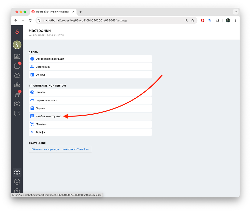 Для перехода к настройкам зайдите в свой личный кабинет на сайте Hotbot.ai или по прямой ссылке my.hotbot.ai.