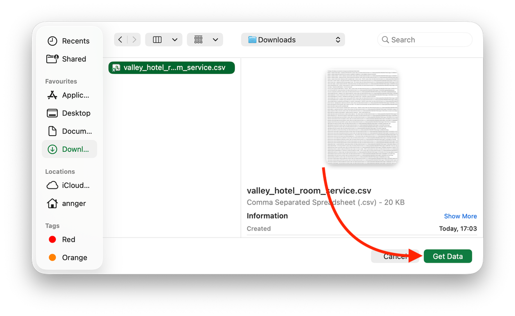 3. Выберите скачанный CSV-файл на устройстве.