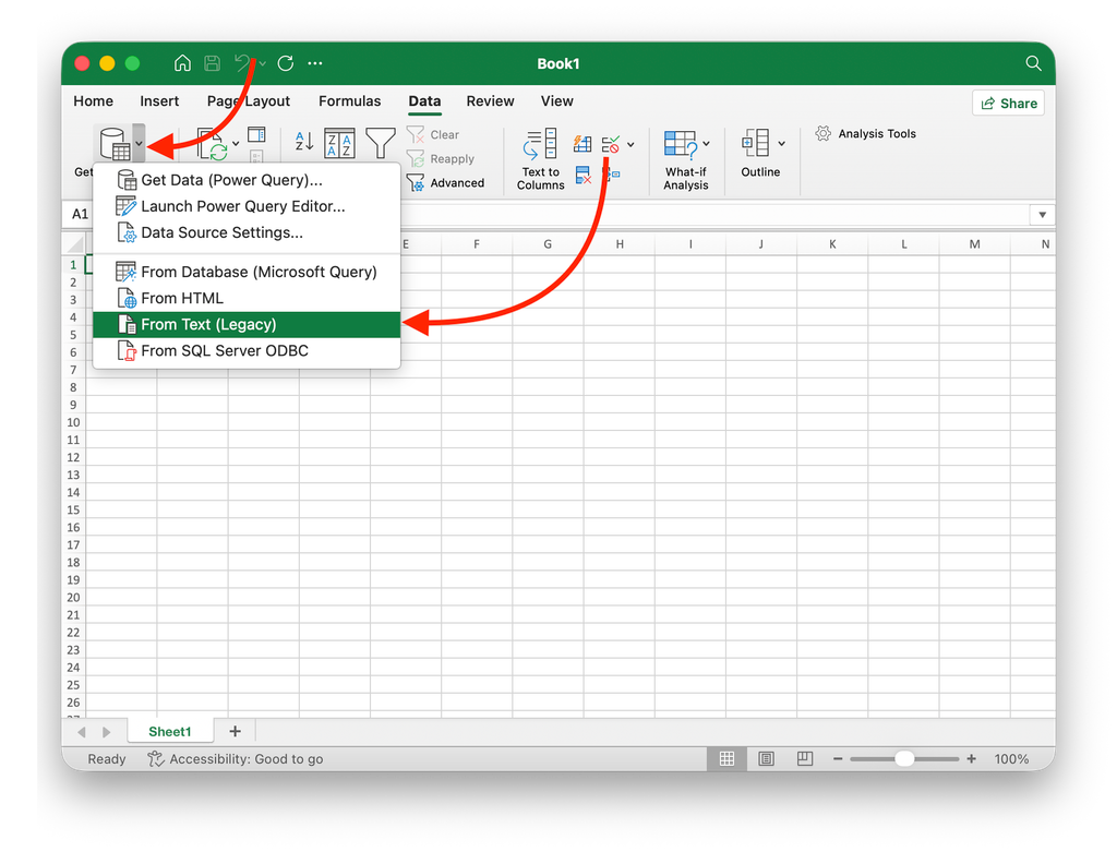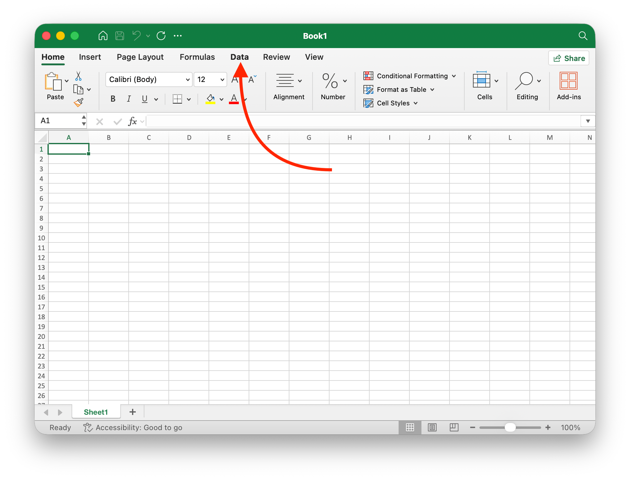 1. Создайте новый файл в Excel и перейдите на вкладку Данные (Data)