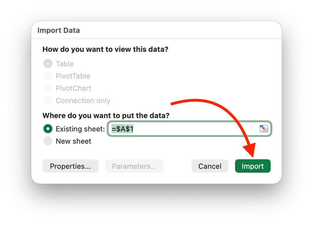 Excel запоминает параметры импорта — при следующем открытии выгрузки файл сразу отобразится в правильном виде.