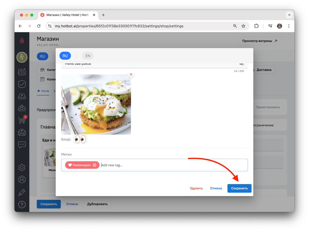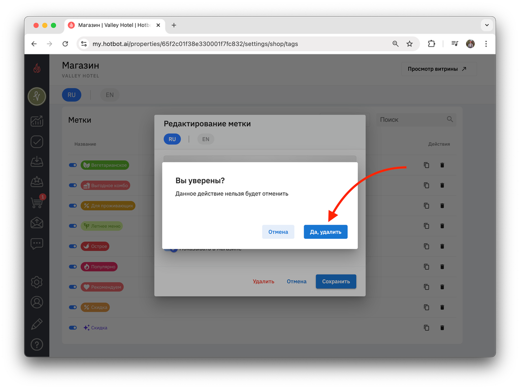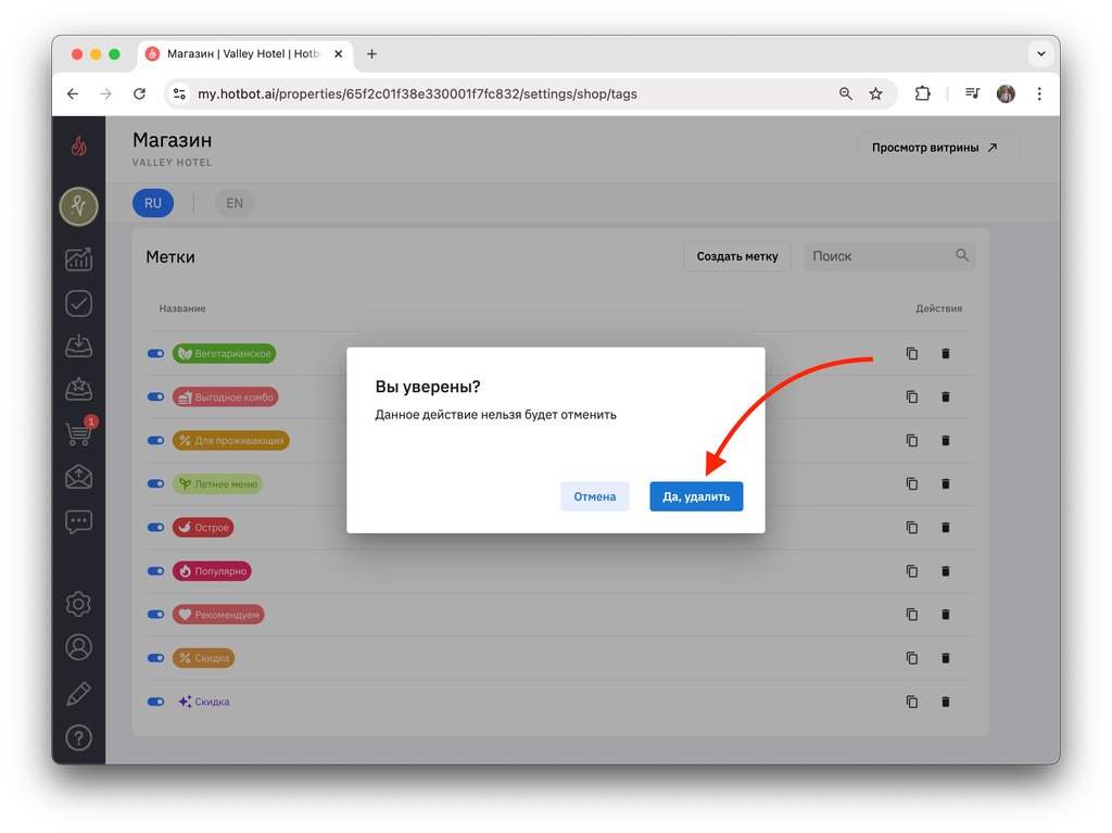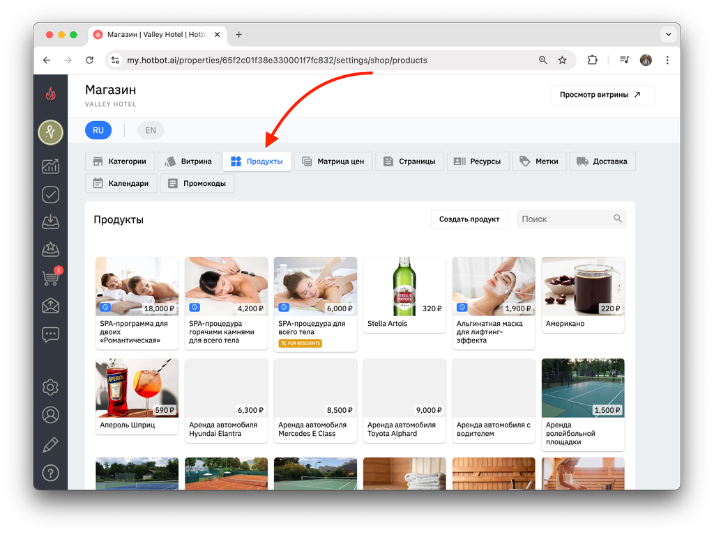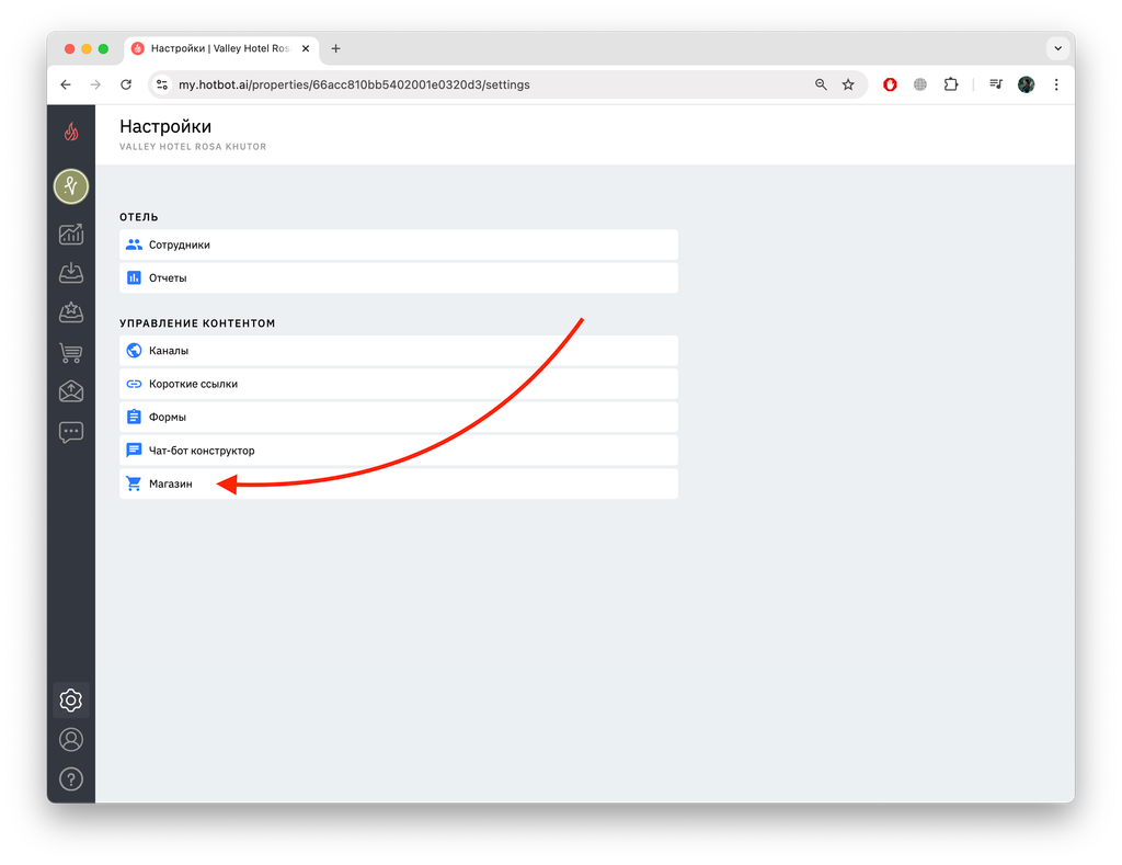 Если у вас пока нет доступа, пройдите базовый курс Управление контентом магазина и отправьте заявку на добавление доступа в службу поддержки по кнопке ❓ в нижнем левом углу личного кабинета или напишите на support@hotbot.ai.