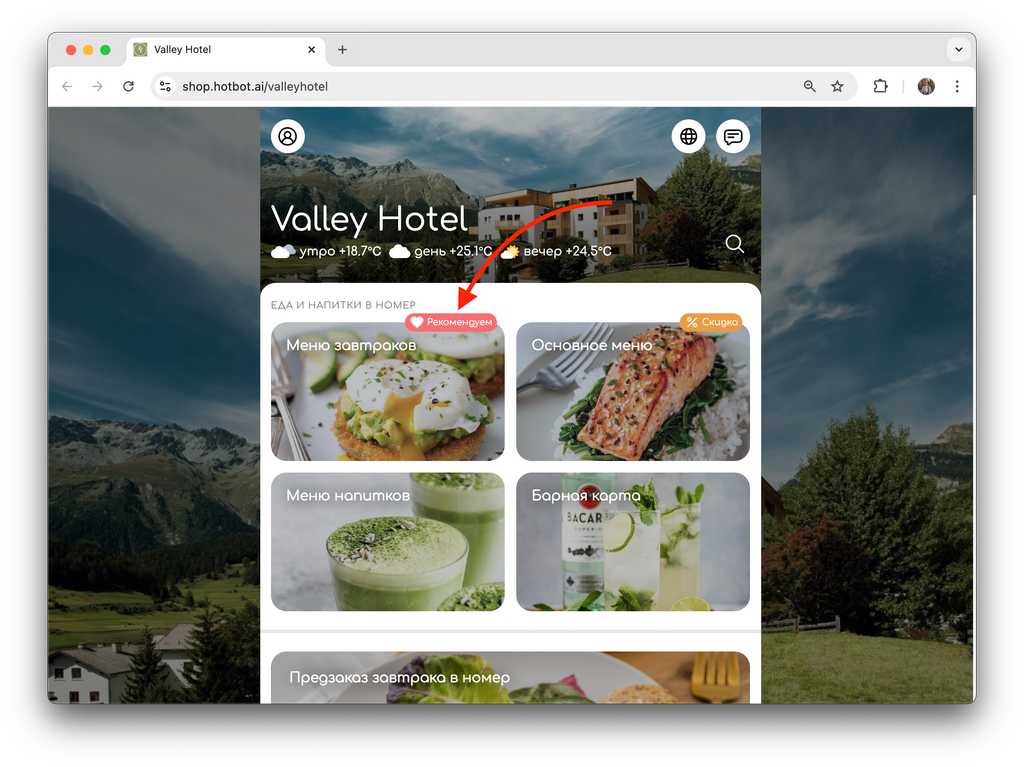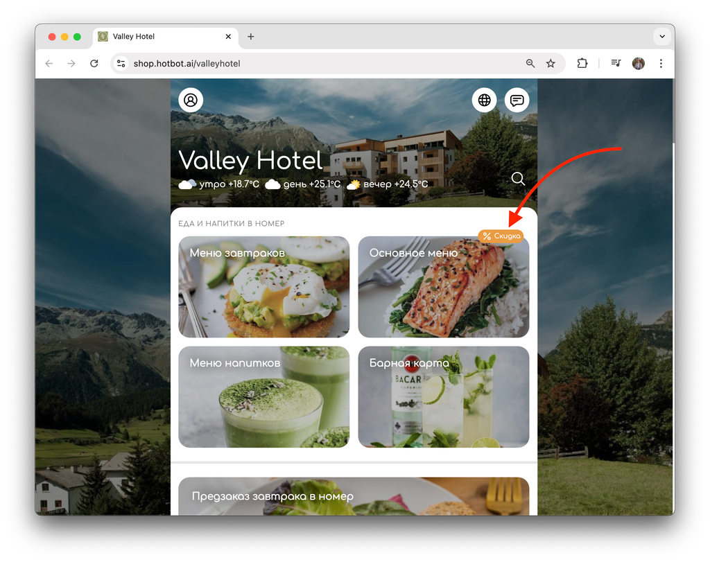 Если у отеля есть фирменный цвет, скопируйте его код в формате HEX (6 символов после #) и вставьте в поле Цвет фона