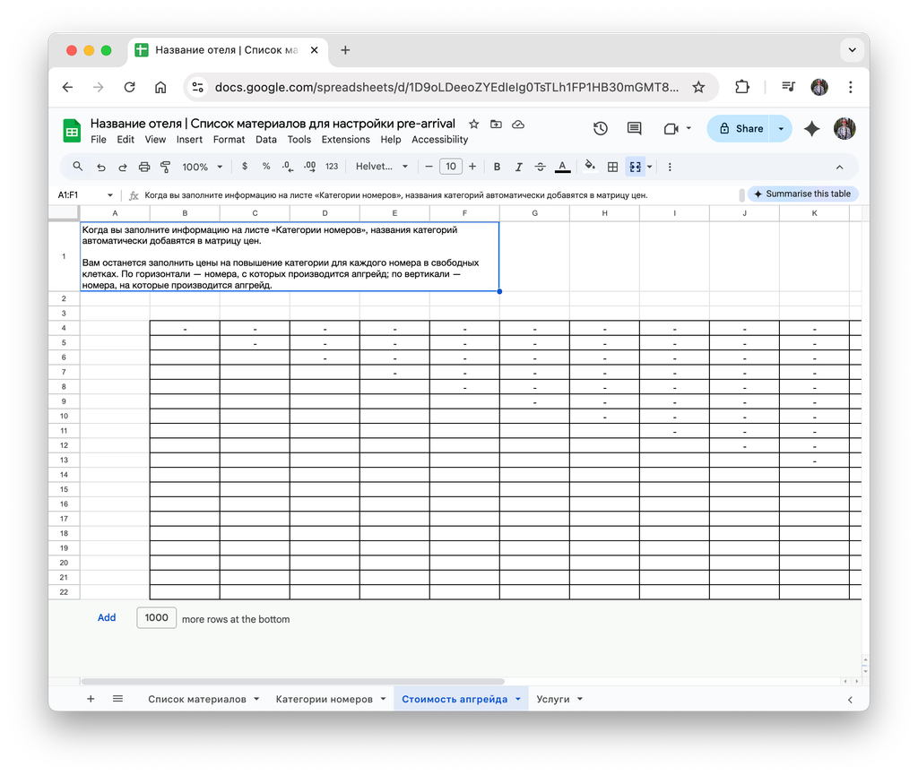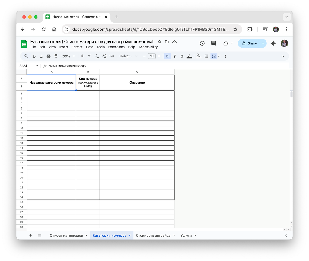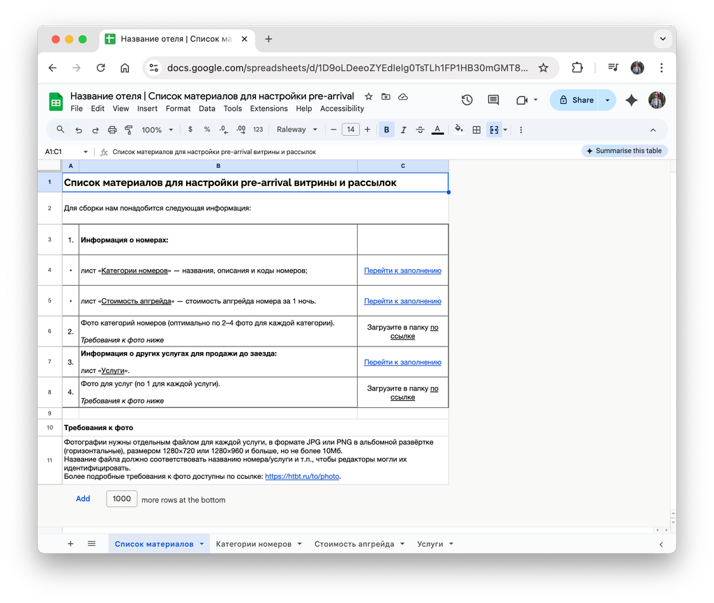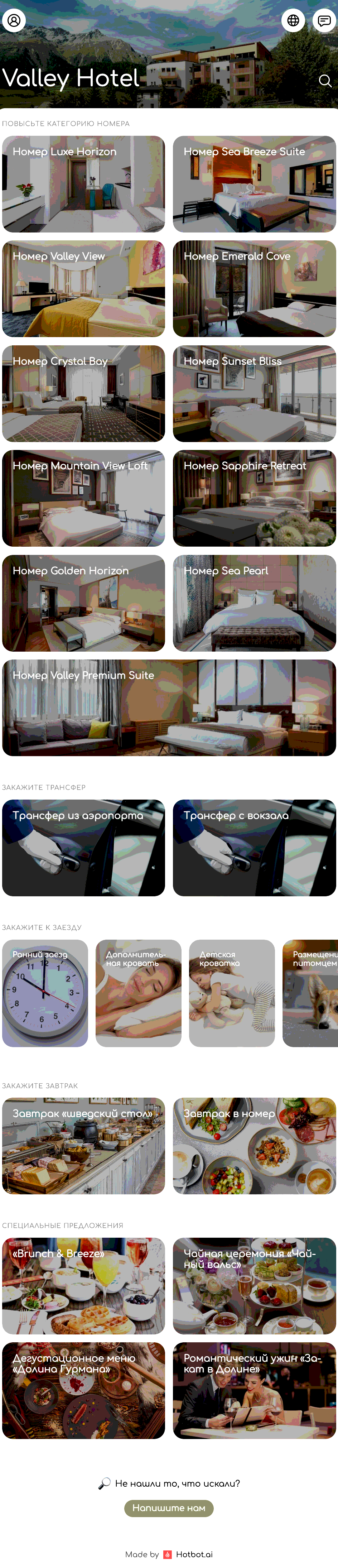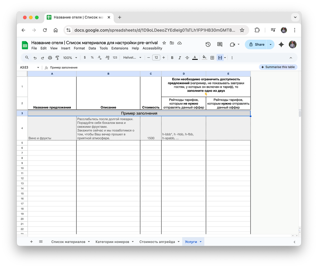 - Дополнительные услуги (ранний заезд, трансфер, завтрак в номер и пр.).