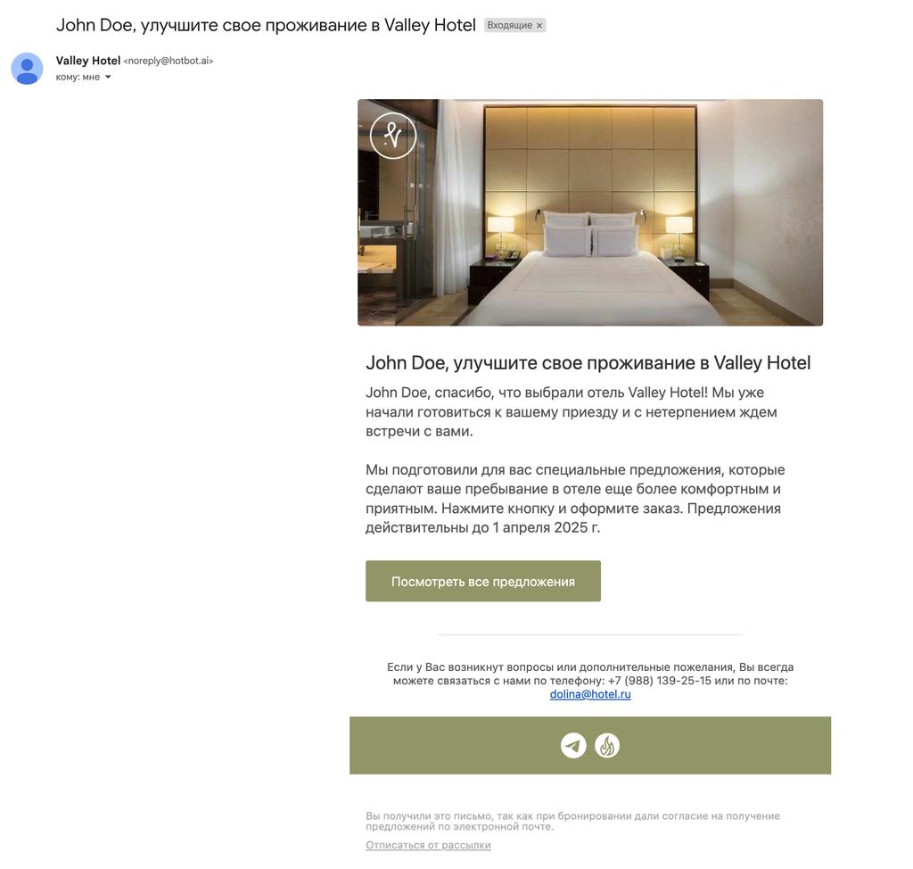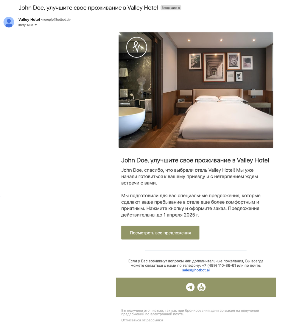 ▼ Витрину с актуальными предложениями на основе данных бронирования гостя, на которую гость попадает по кнопке ▼ Посмотреть все предложения в письме.