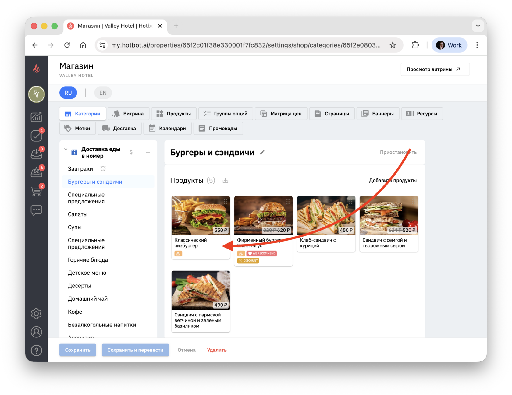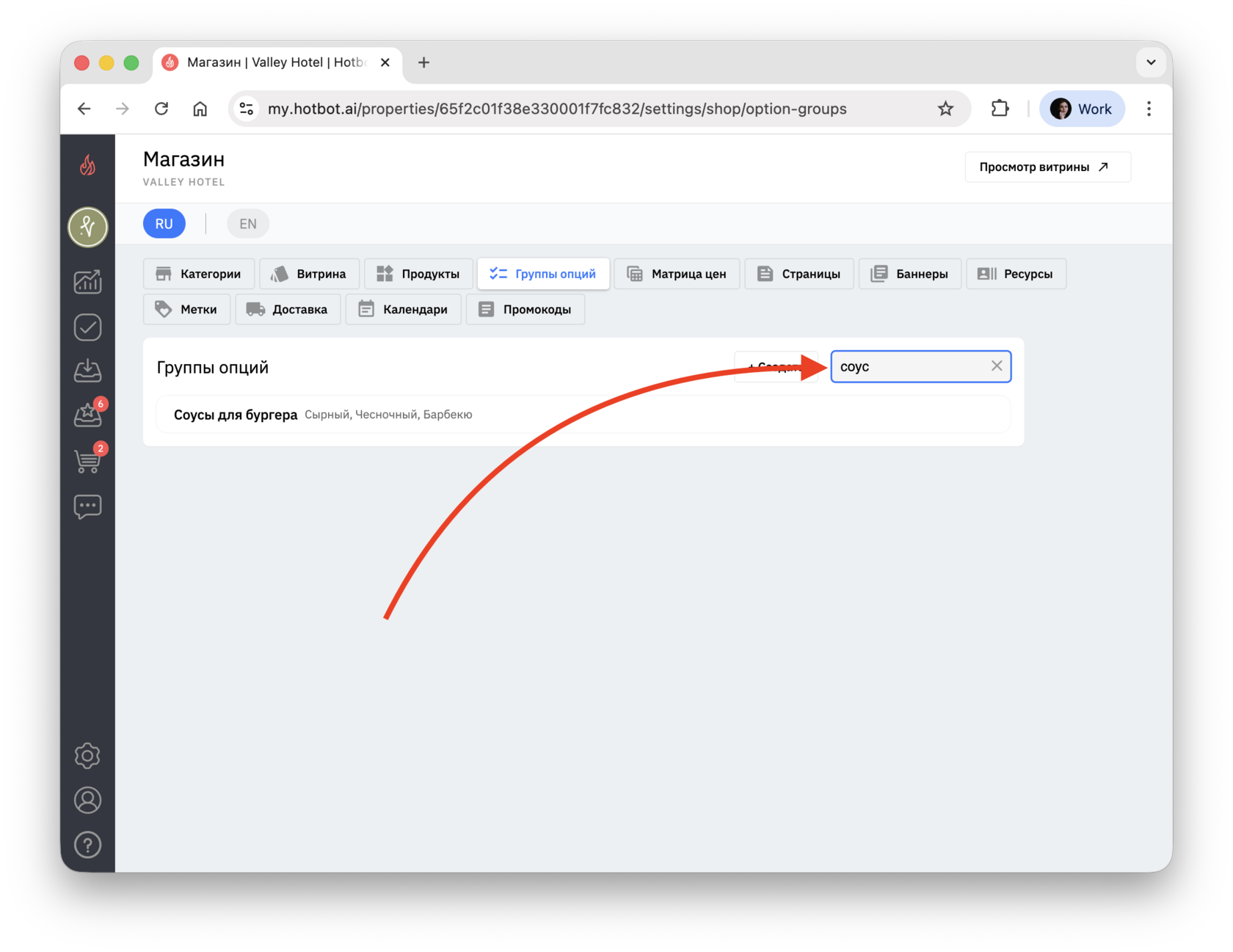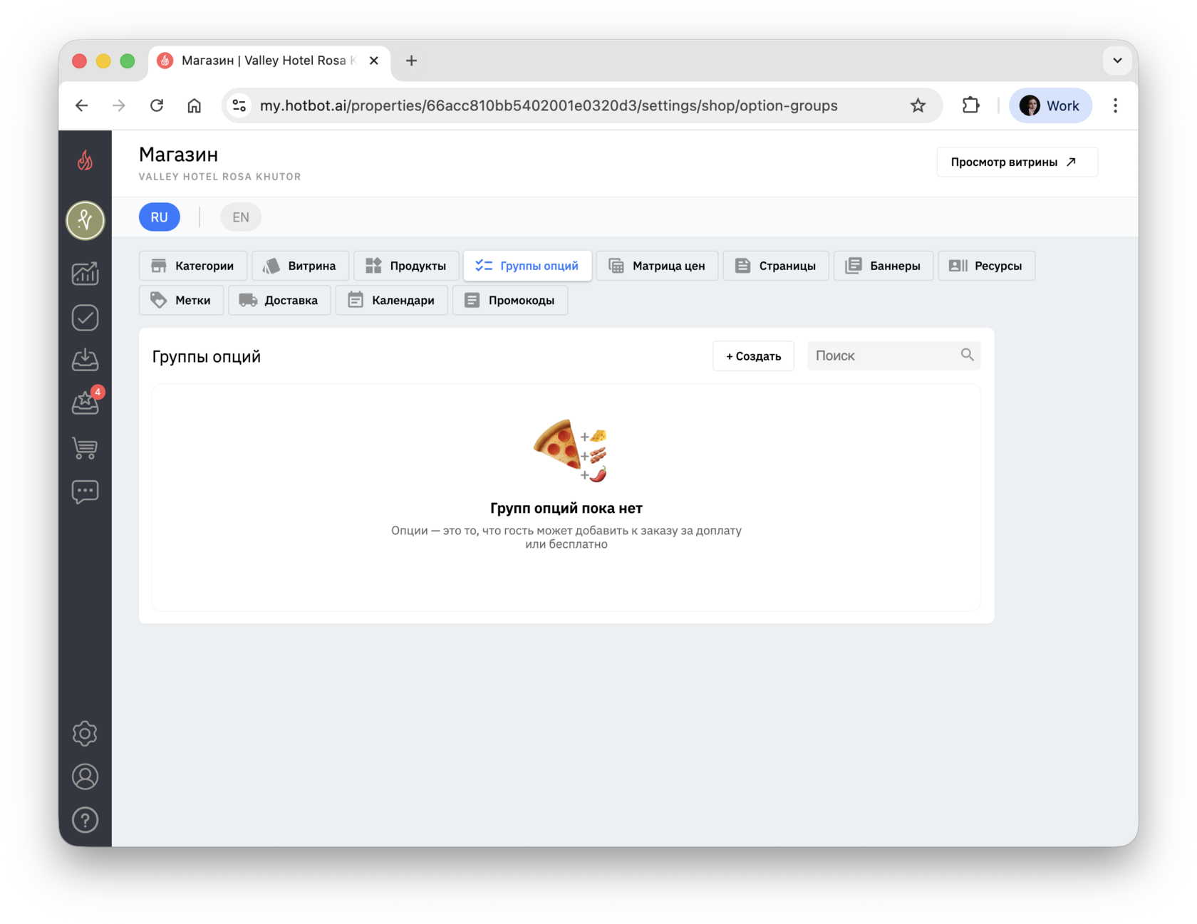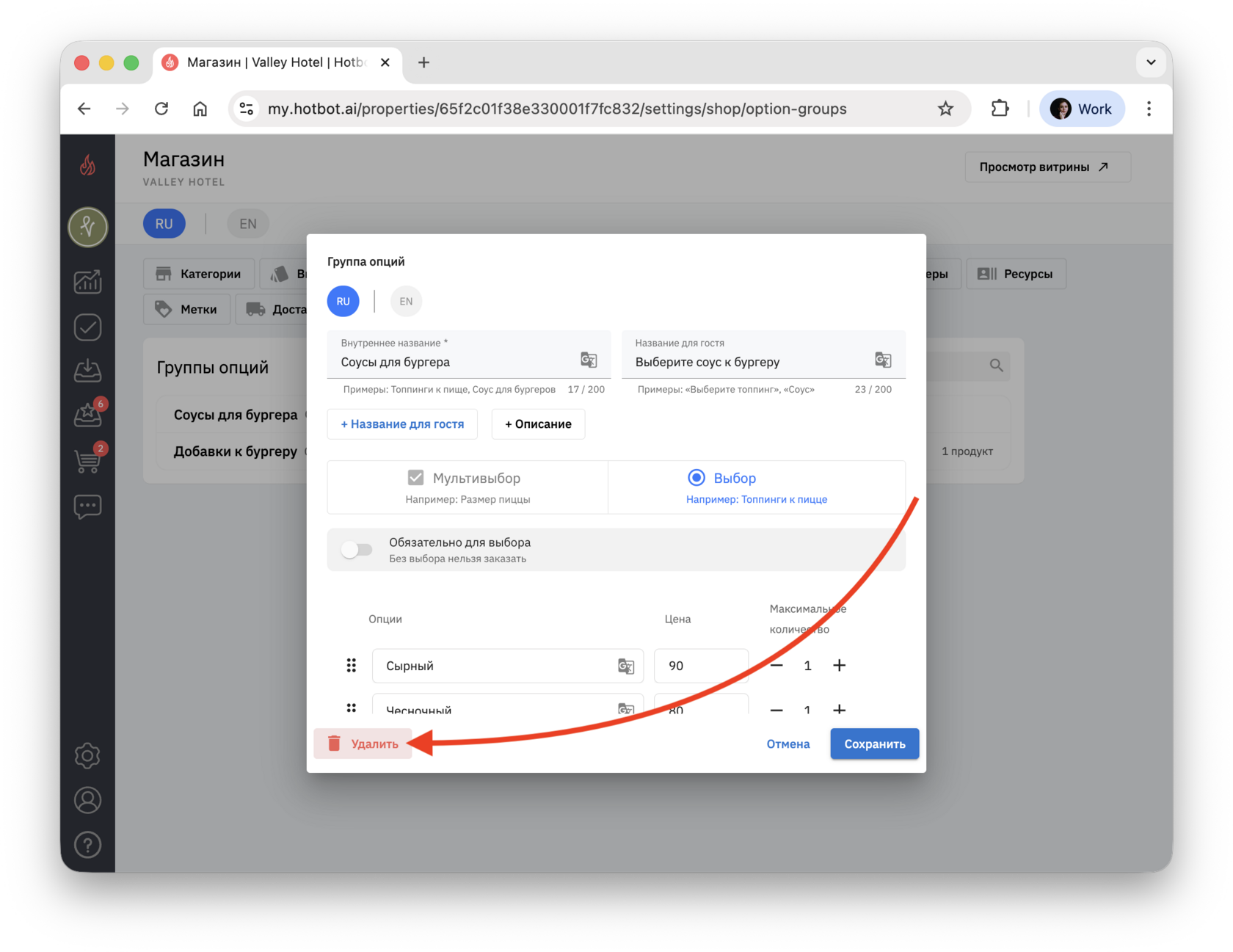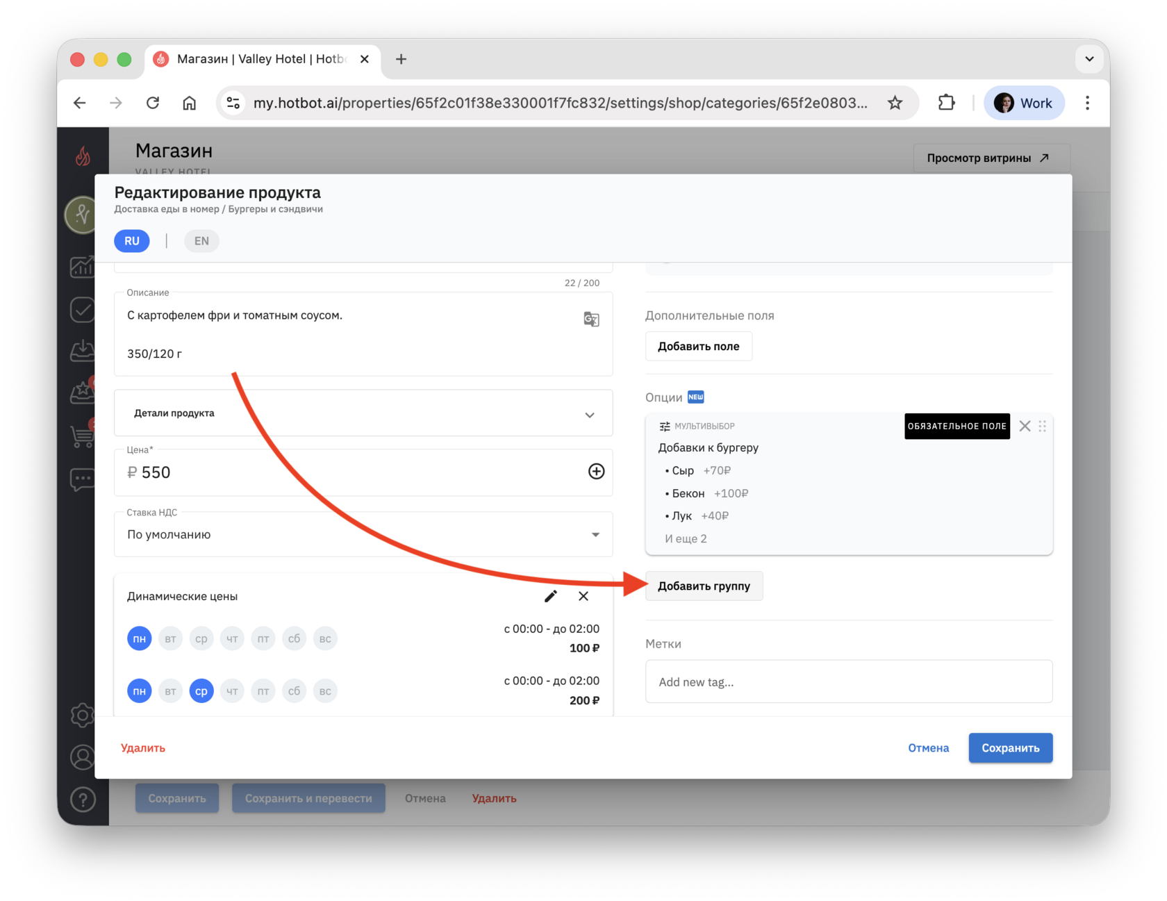 Опции — это дополнительные варианты внутри товара, которые гость может выбрать бесплатно или за доплату.