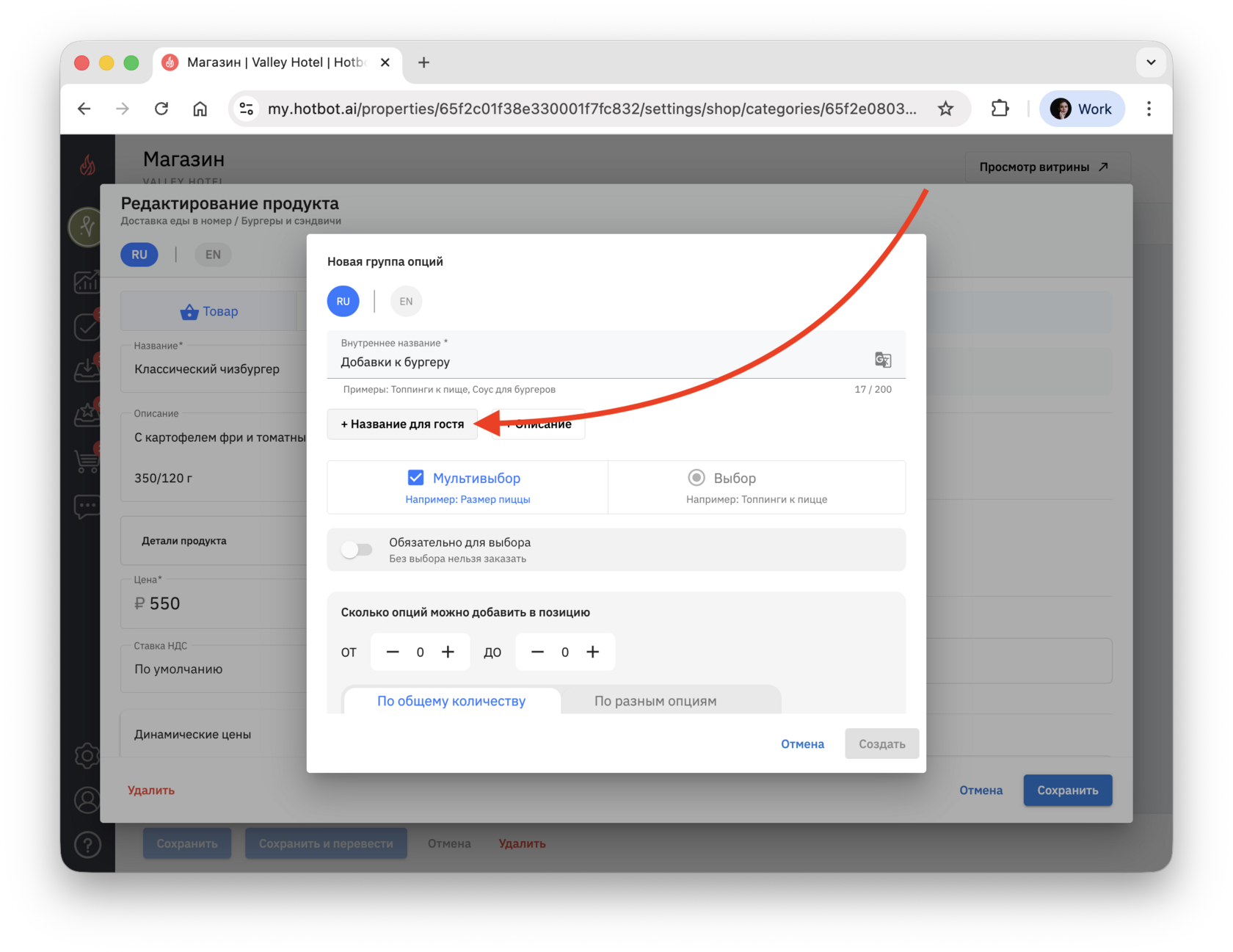 Добавьте по кнопке + Название для гостя при необходимости.^