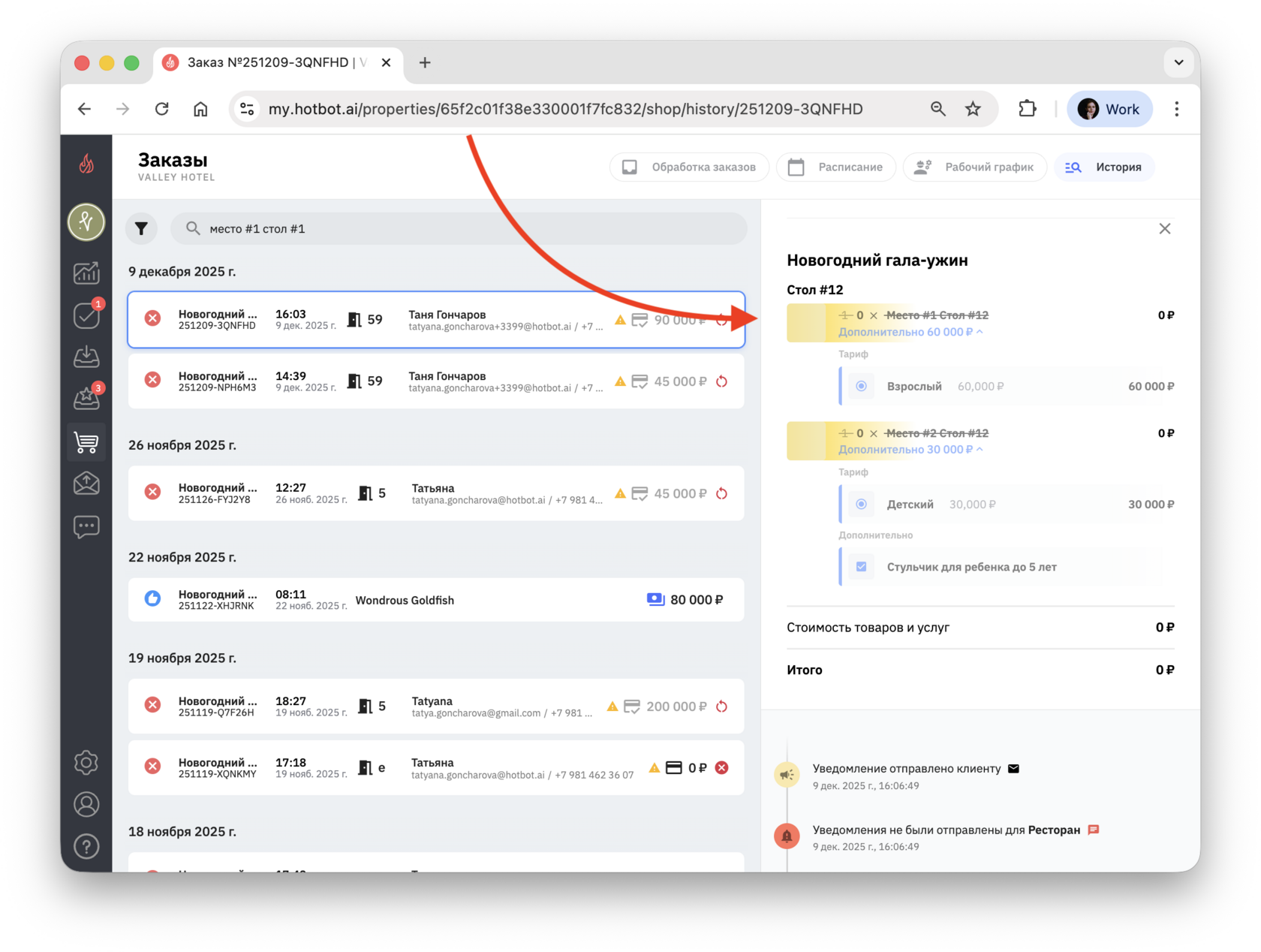 Работа с Заказами — ключевая задача для успешного взаимодействия с гостями. Сервис Хотбот предоставляет полный цикл инструментов: от создания заказа до его выполнения или возврата.