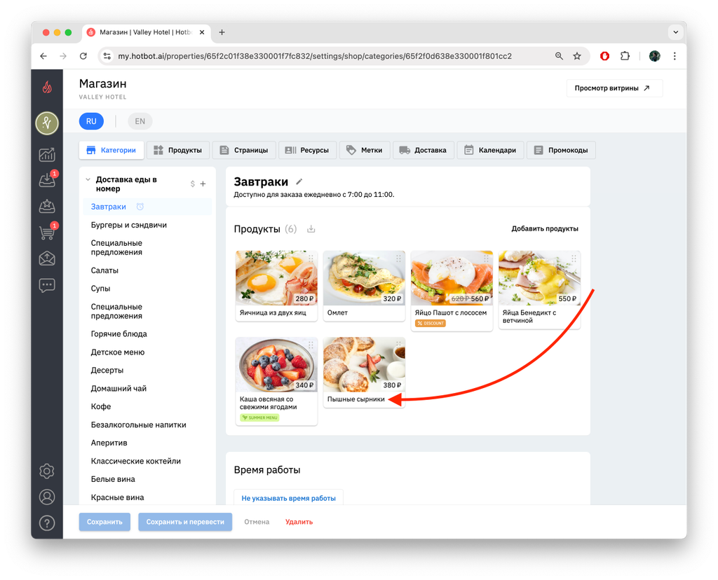 При необходимости вы можете изменить порядок отображения продуктов, перетаскивая их с помощью кнопки с точками.