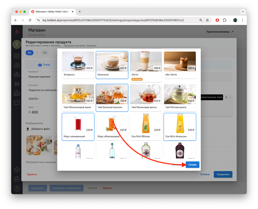 Готово! Вы добавили продукты в перекрестные продажи. Таким образом можно настраивать рекомендации для любых продуктов, перекрещивая их в рамках одной категории.