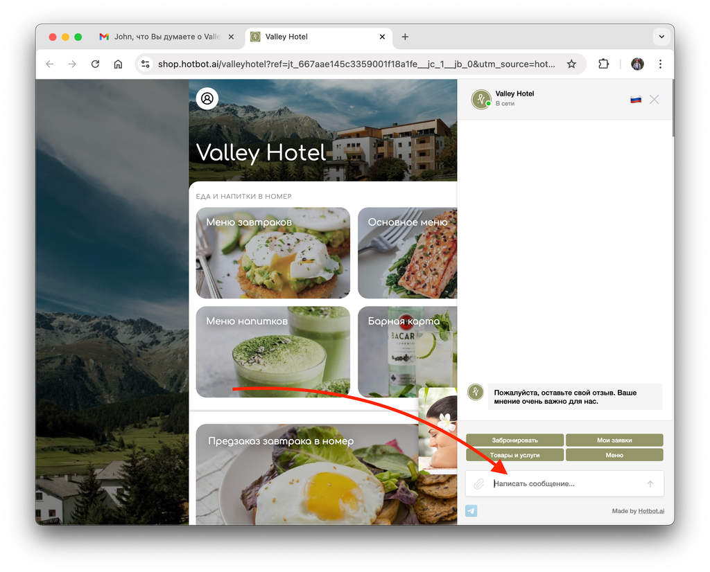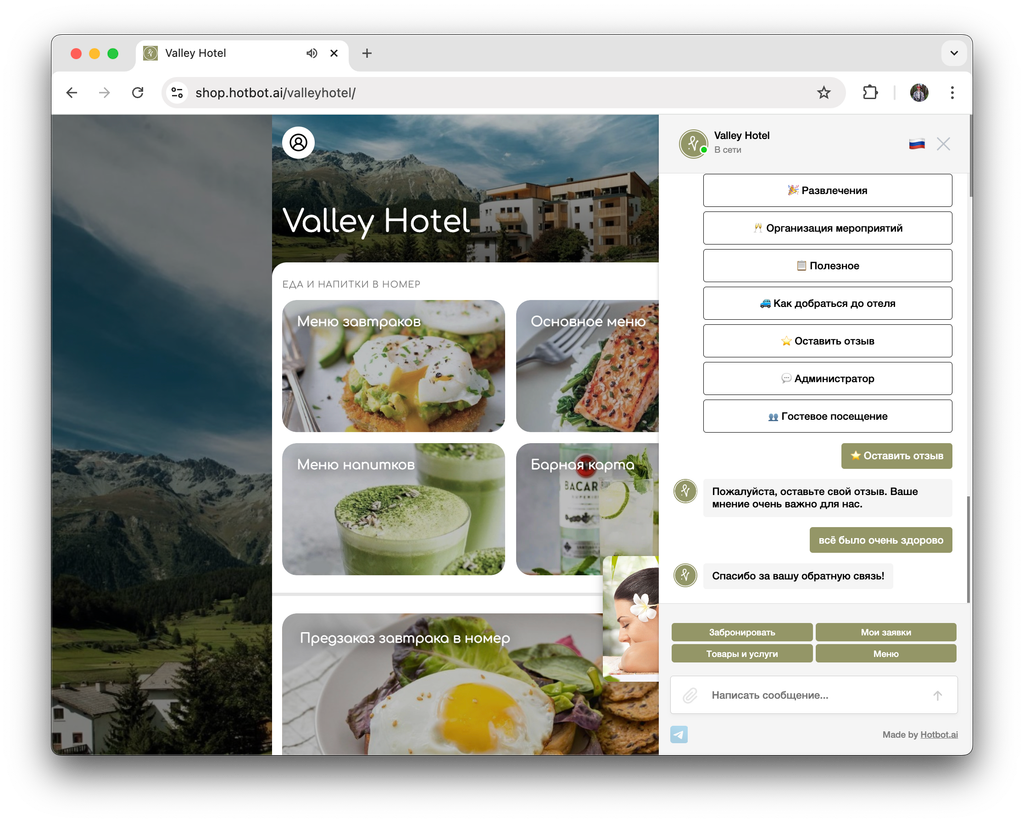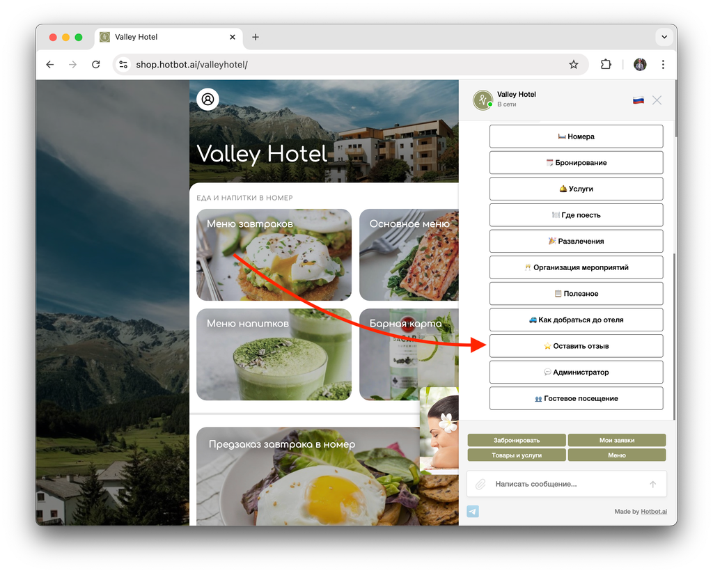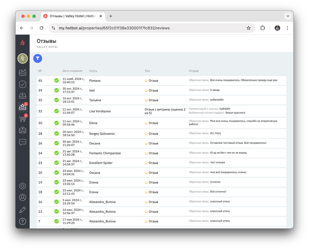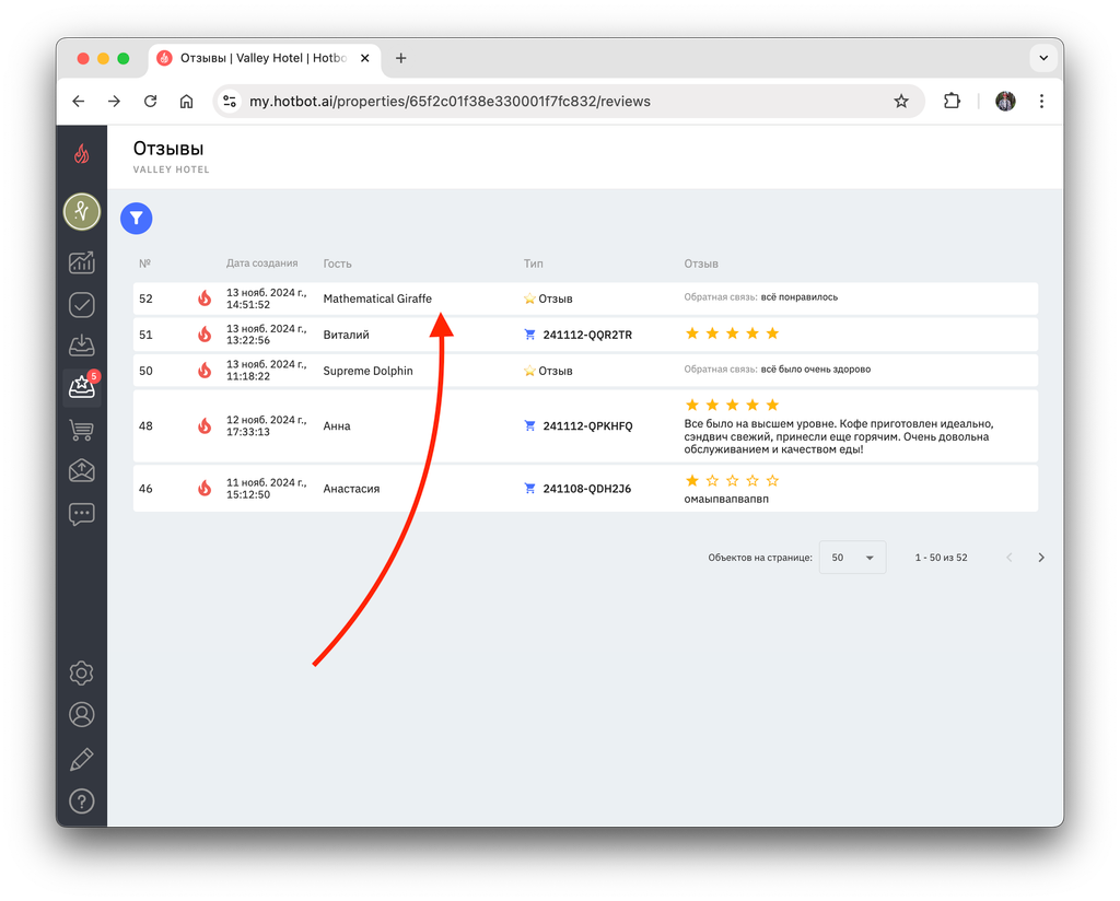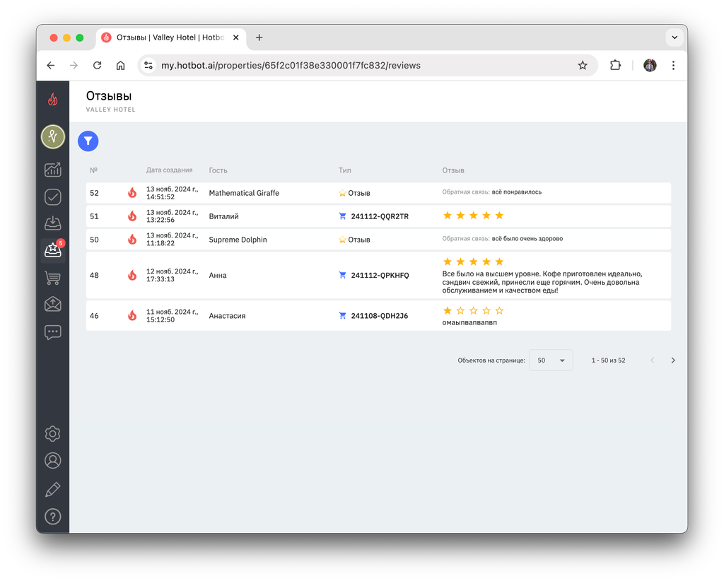 Когда гость оставляет отзыв, сотрудник отеля получает уведомление в личном кабинете Хотбот или в Telegram-боте.