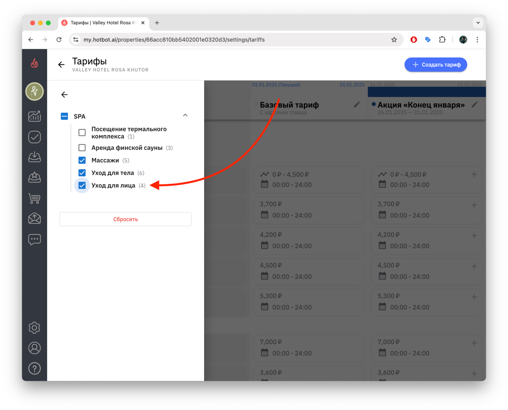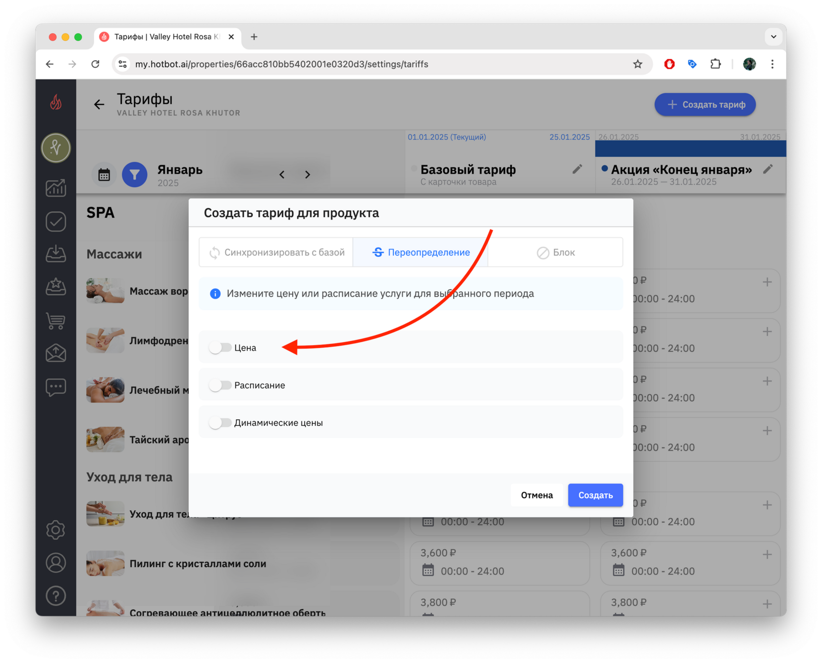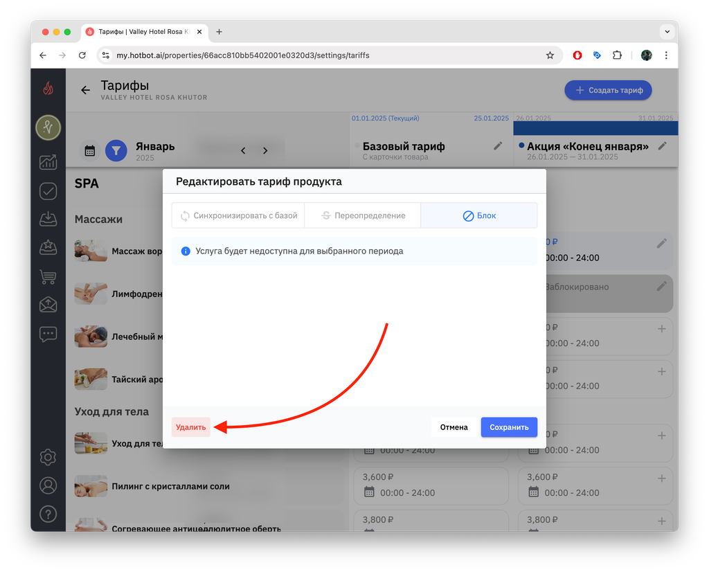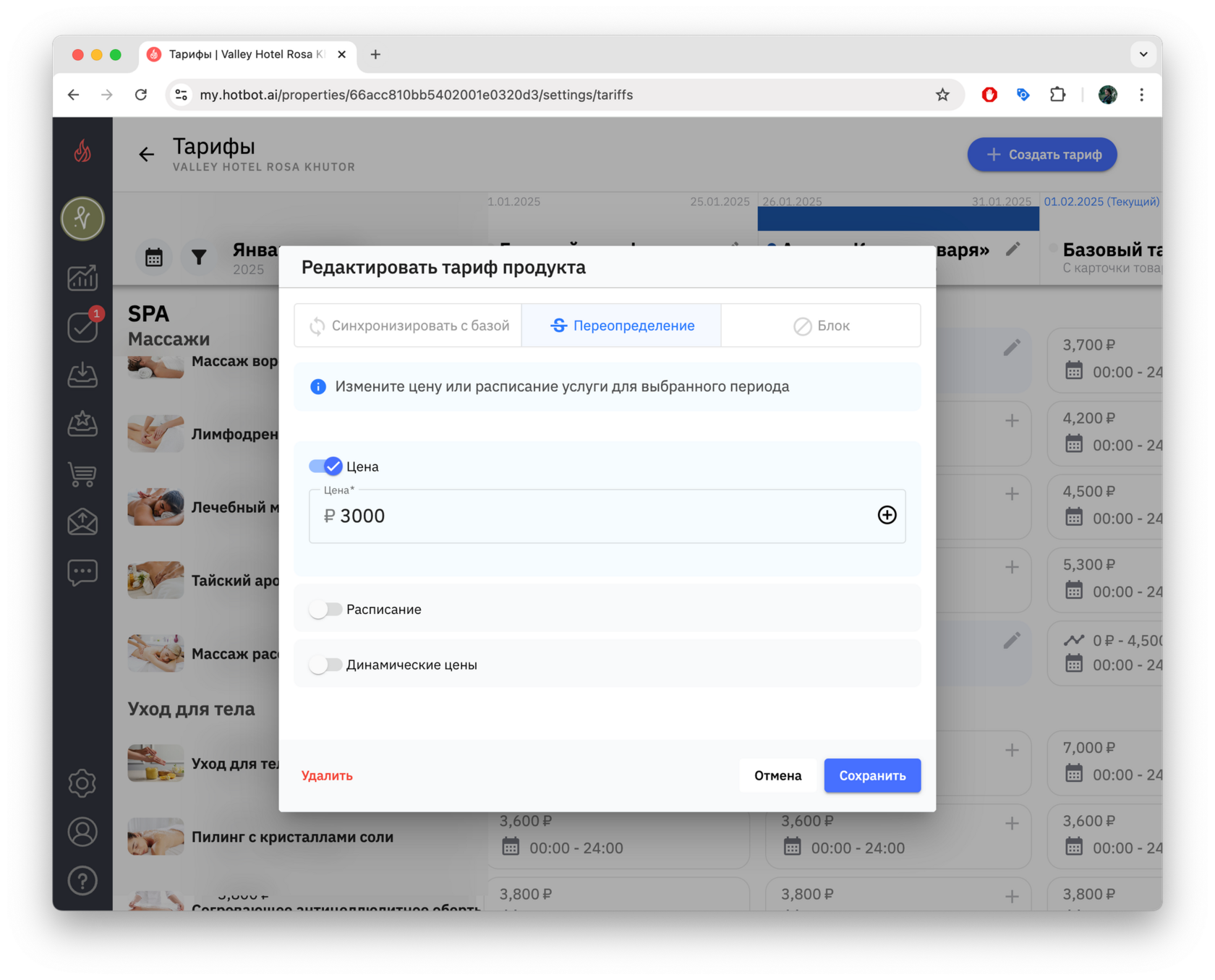 Тарифы — это инструмент управления ценами, который позволяет гибко управлять стоимостью услуг в зависимости от сезонности, загрузки, календаря мероприятий города, а также от других факторов. В Хотбот тарифы помогают автоматизировать ценообразование без изменения базового тарифа.