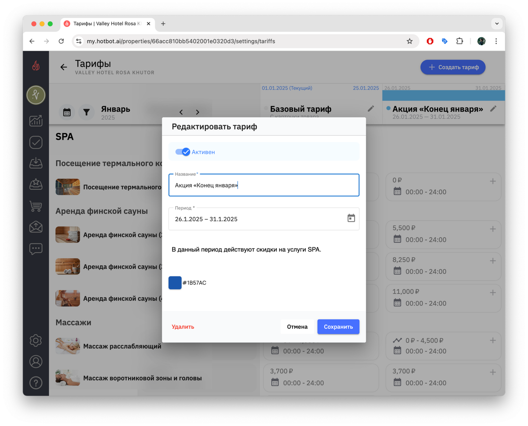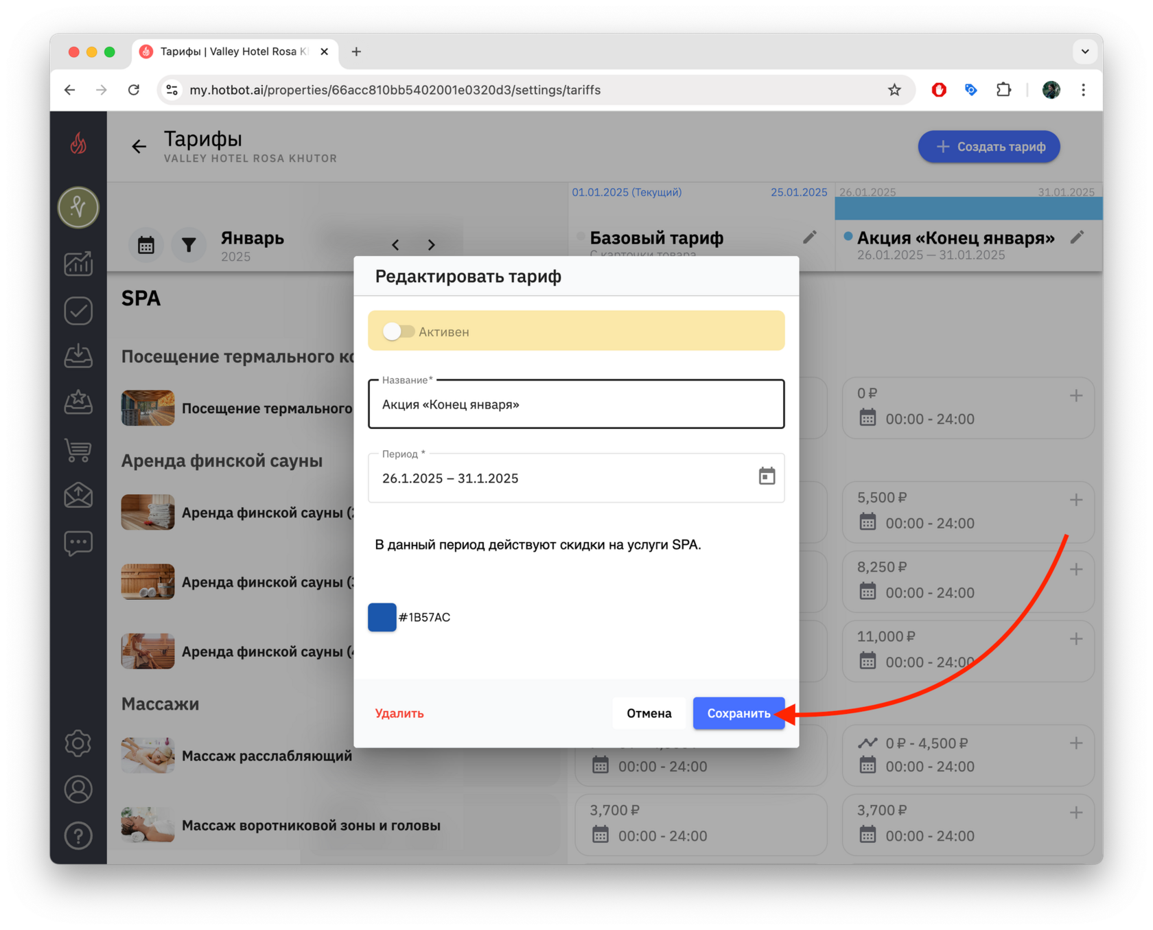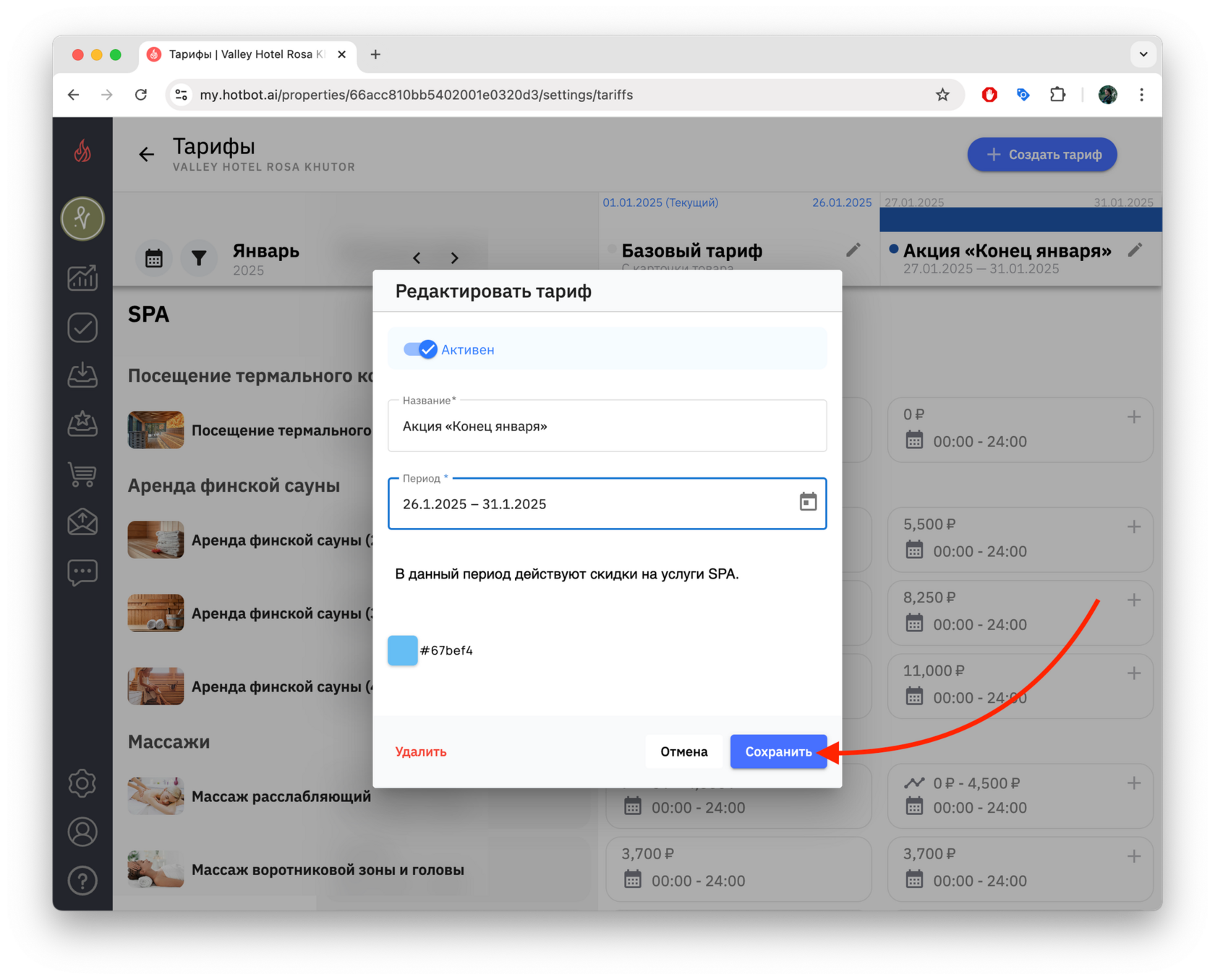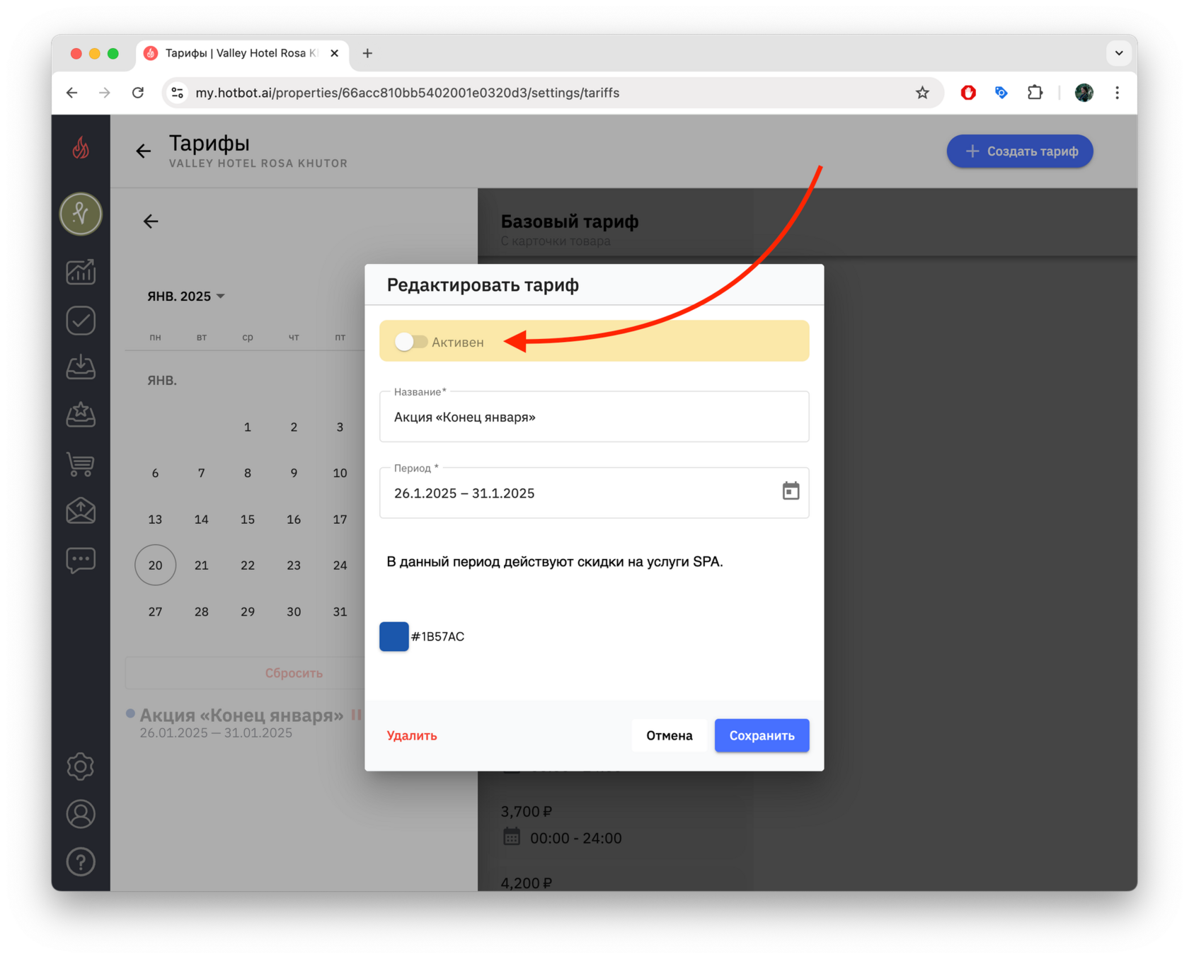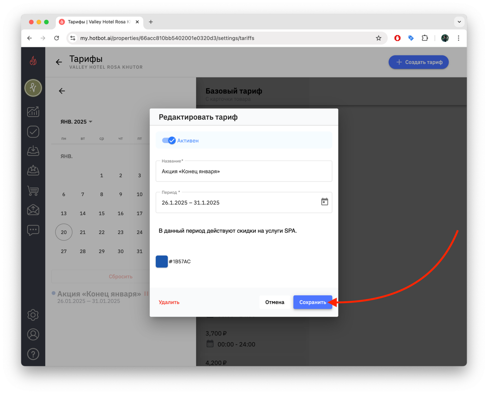 4. Чтобы просмотреть список созданных тарифов, снова откройте календарь — в нижней части появится перечень тарифов выбранного месяца.