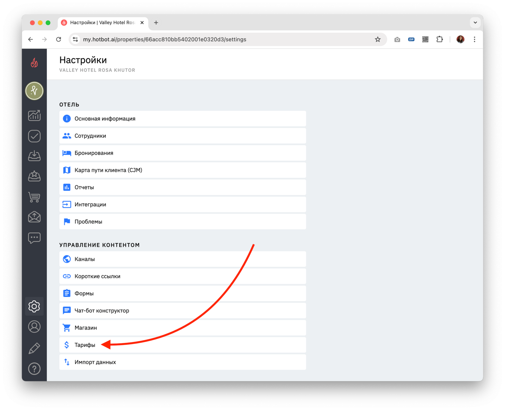 Для перехода к настройкам зайдите в свой личный кабинет на сайте Hotbot.ai или по прямой ссылке my.hotbot.ai.