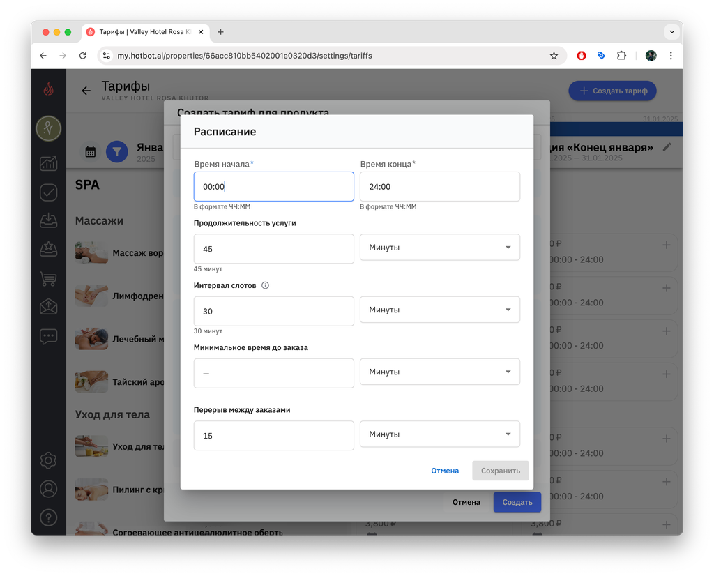 В этой статье вы узнаете о том, как подключать и настраивать тарифы на услуги в отеле.