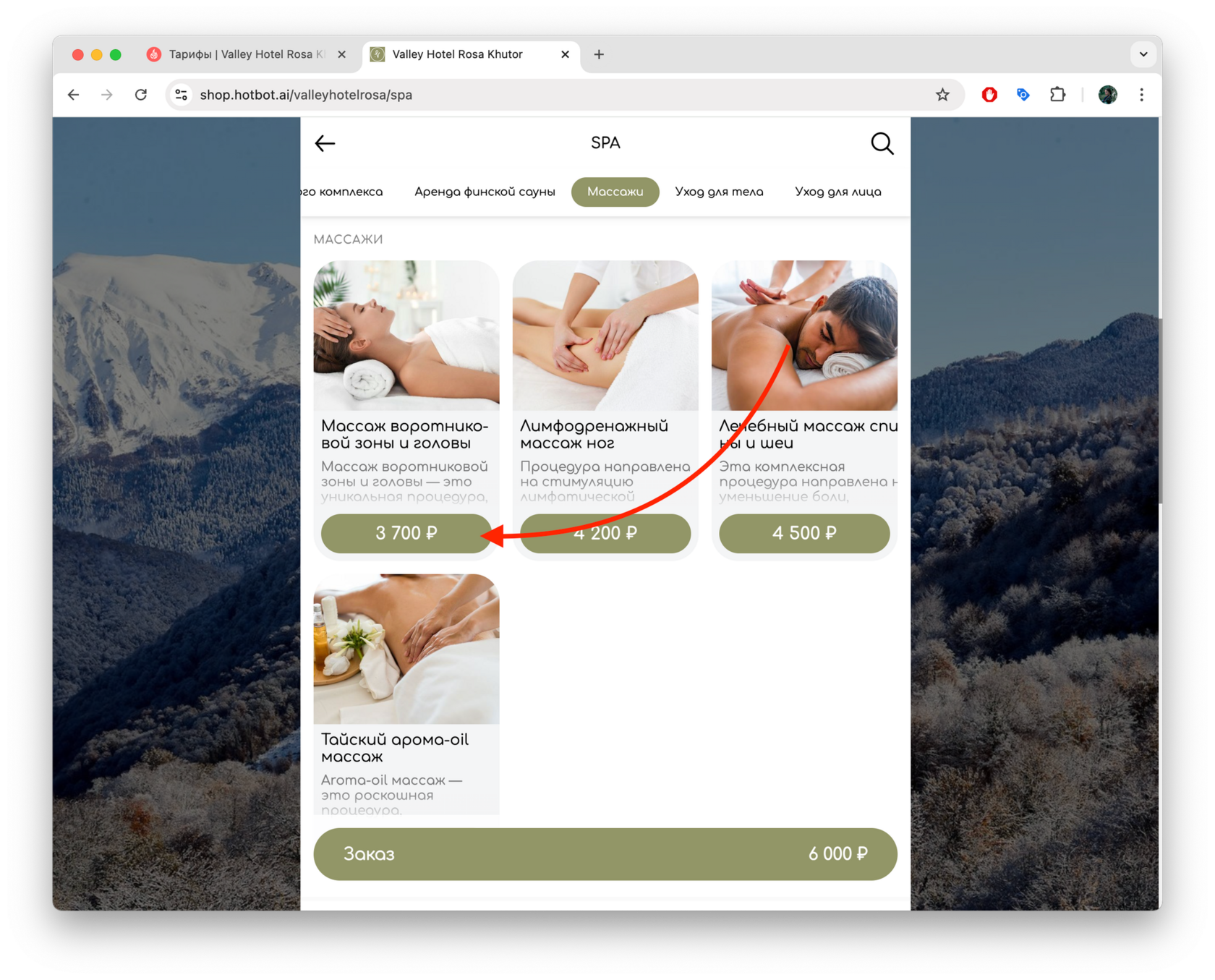 2. Выберите необходимые услуги.