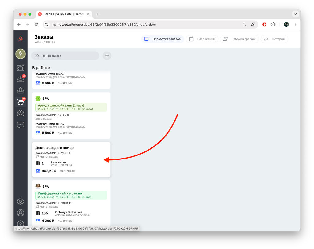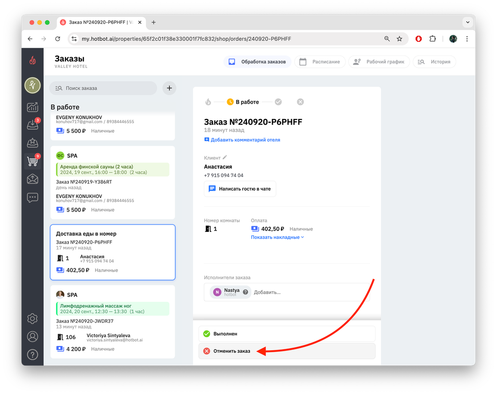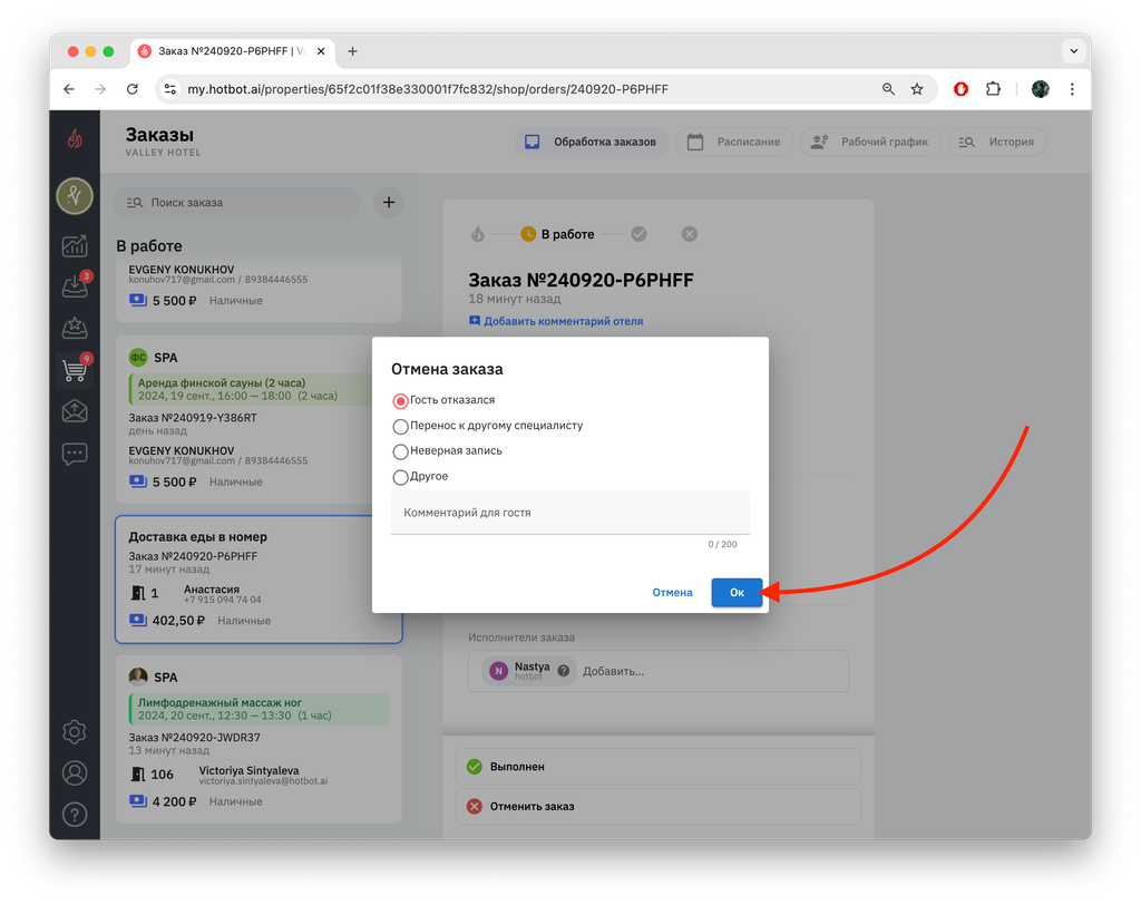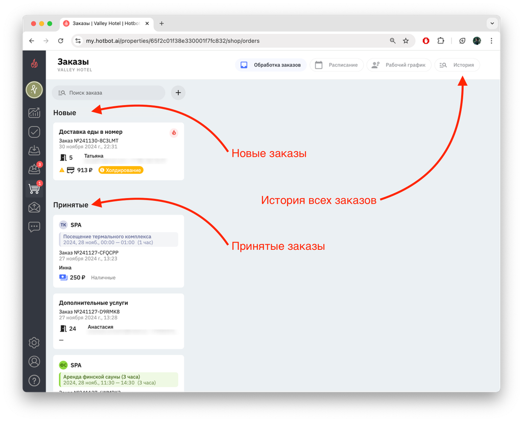 Работа с Заказами — ключевая задача для успешного взаимодействия с гостями. Сервис Хотбот предоставляет полный цикл инструментов: от создания заказа до его выполнения или возврата.