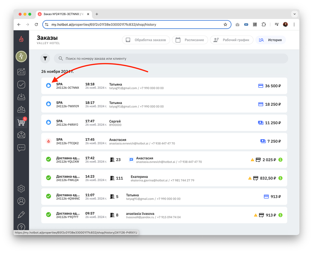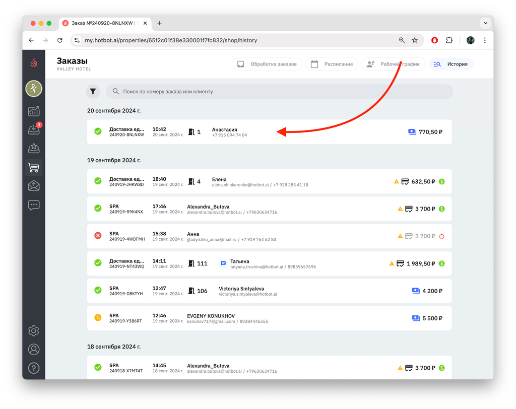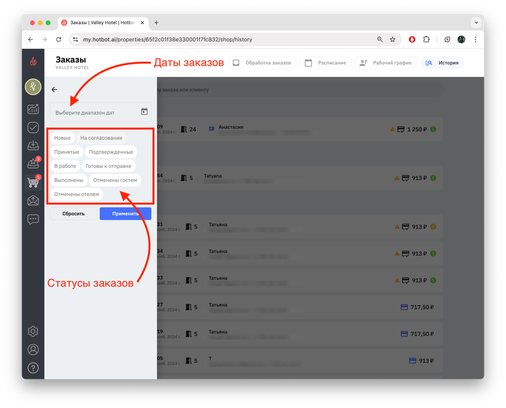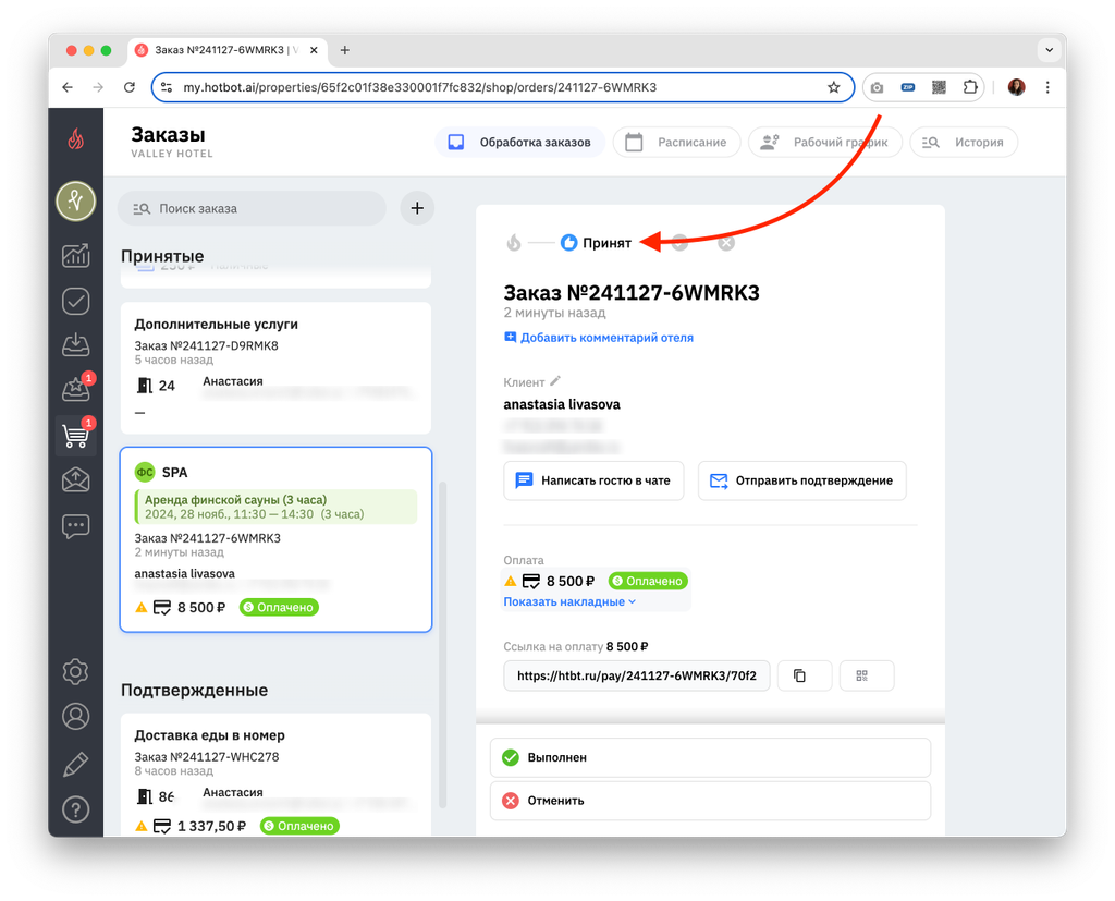 Работа с Заказами — ключевая задача для успешного взаимодействия с гостями. Сервис Хотбот предоставляет полный цикл инструментов: от создания заказа до его выполнения или возврата.