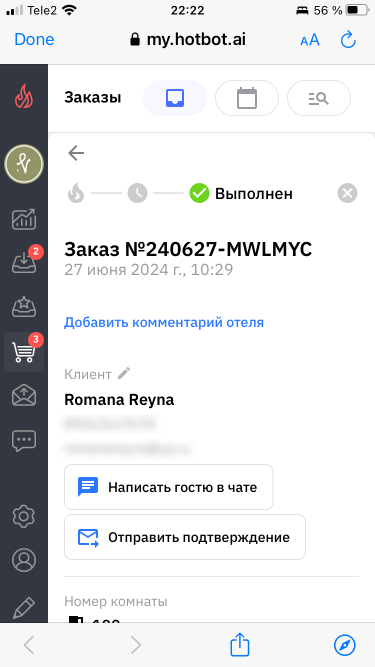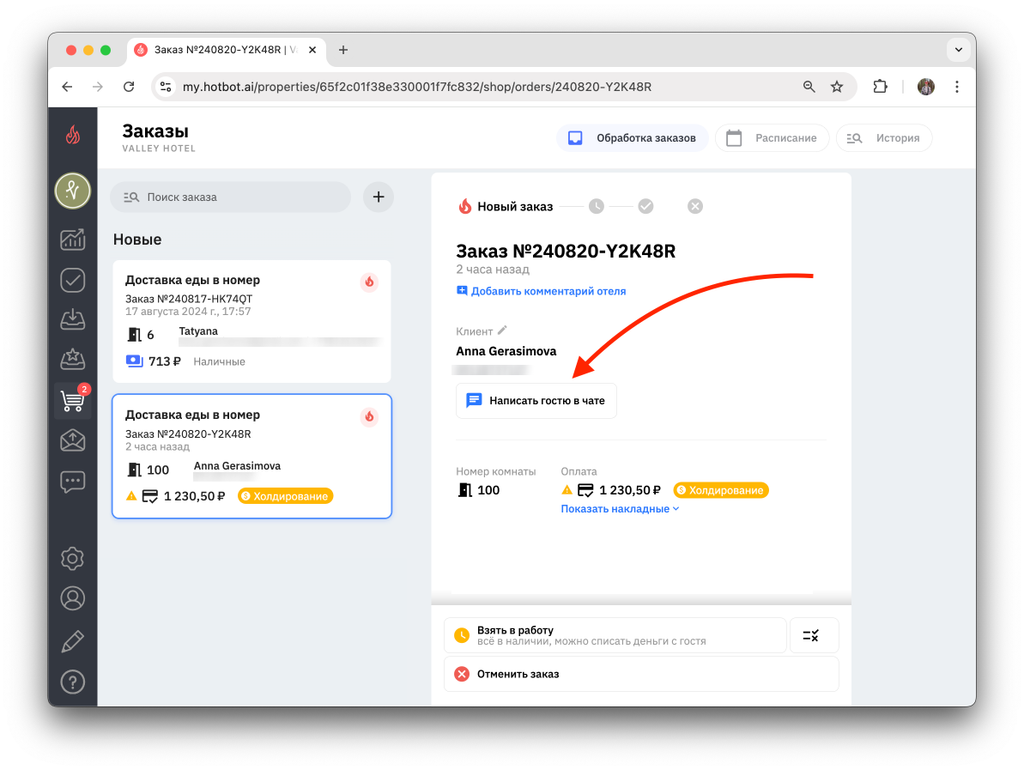 Если гость не подключил уведомления, свяжитесь с ним в чате.