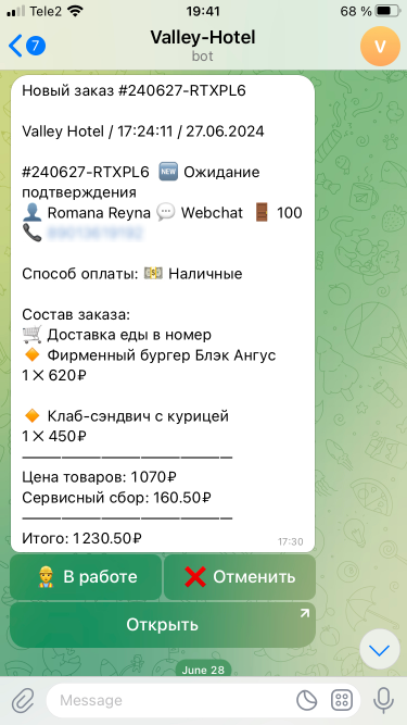 - Отменен гостем — гость отменил заказ (доступно, пока заказ не принят).