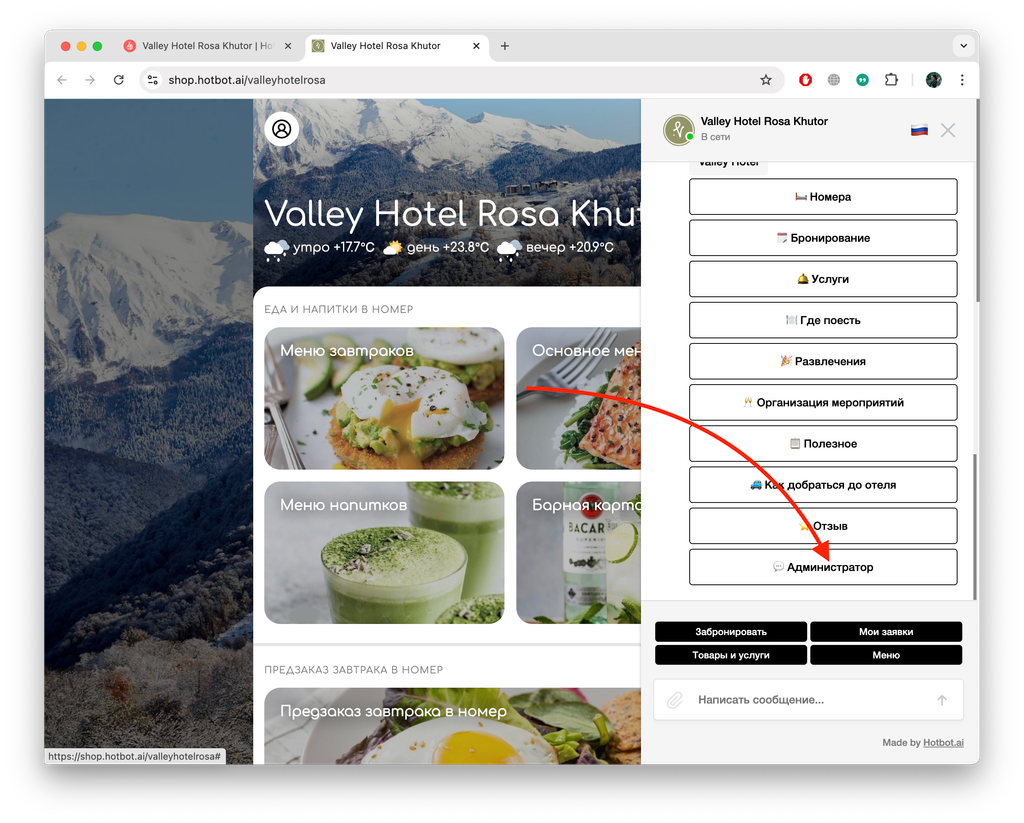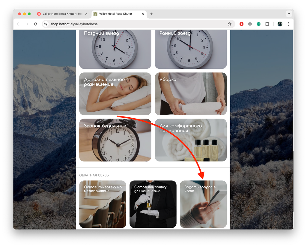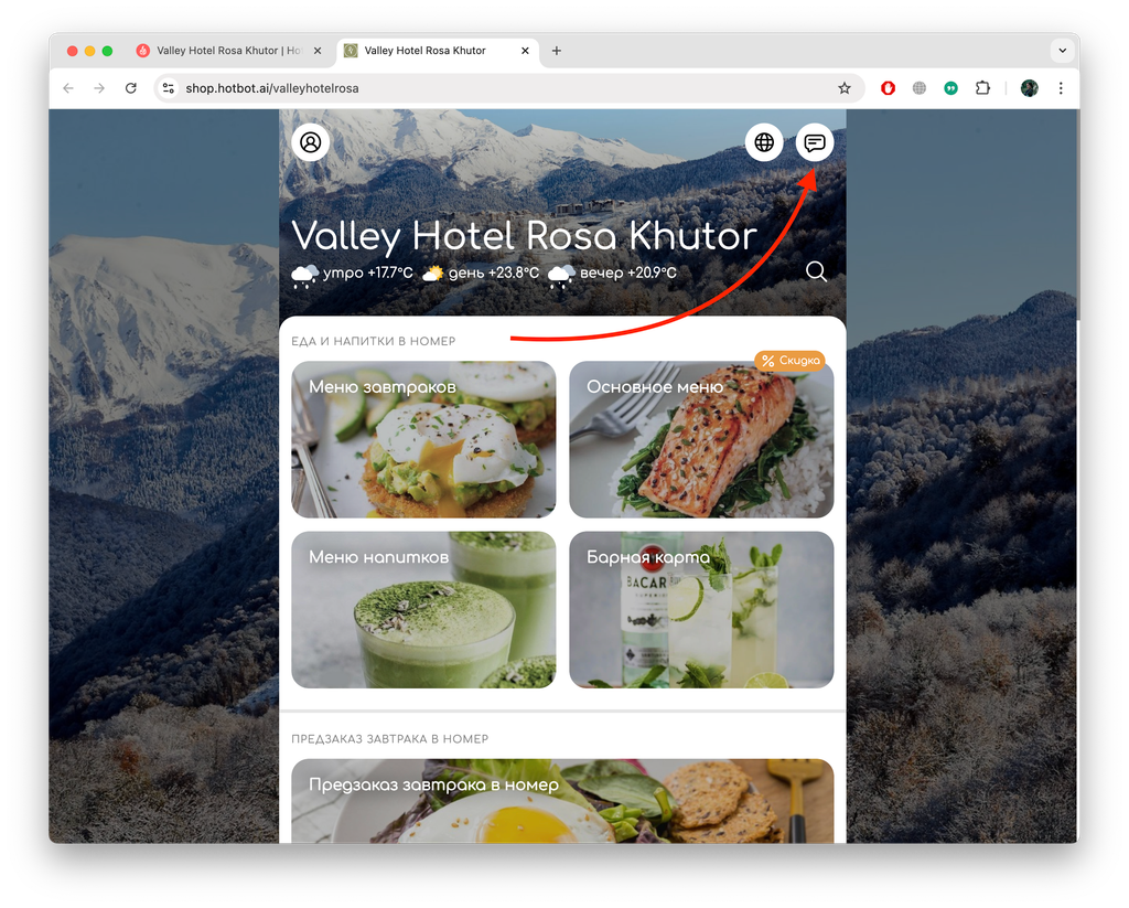1. Гость переходит в чат-бот с онлайн-витрины: