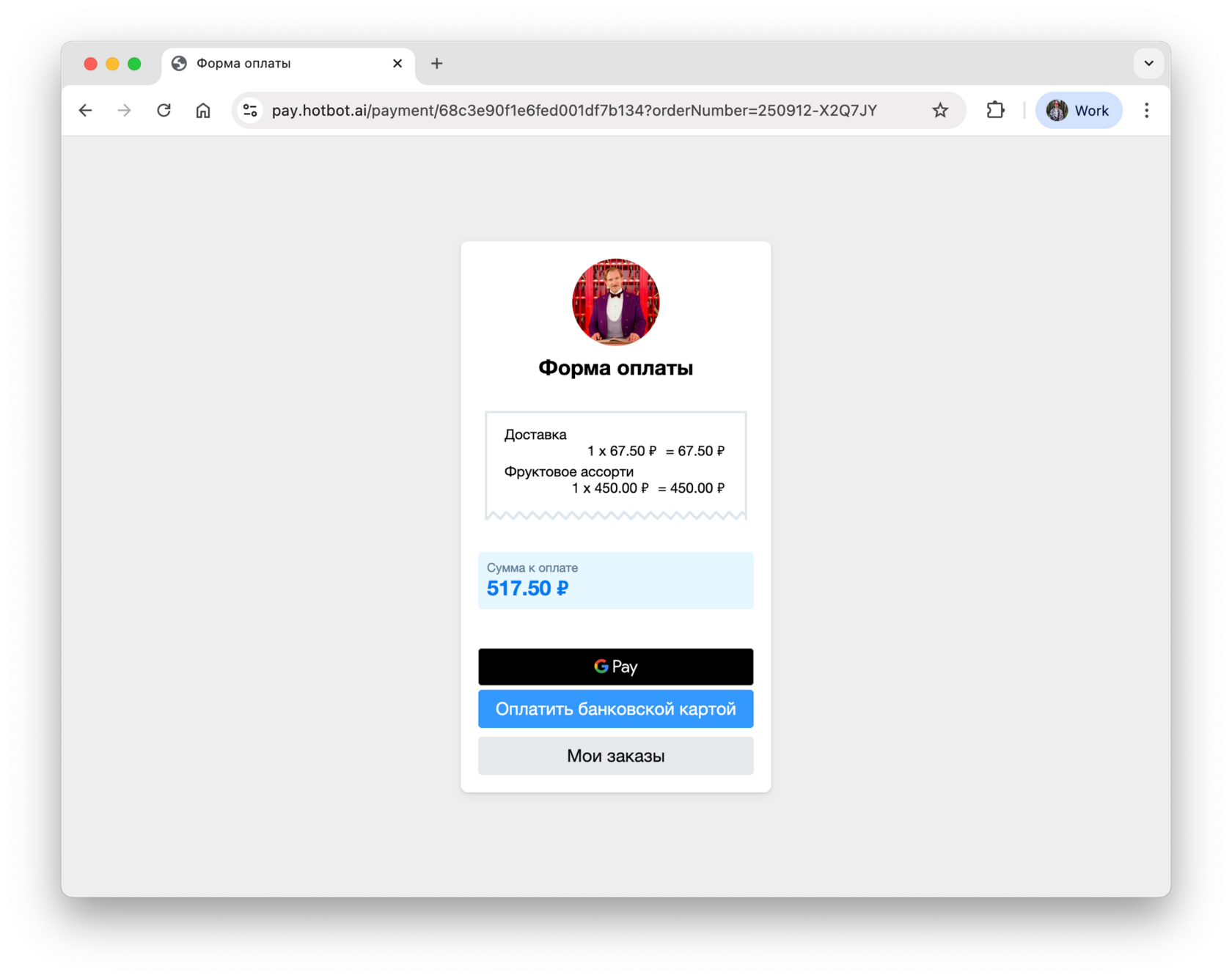 Заказ был оплачен онлайн, и доплата также принимается онлайн.