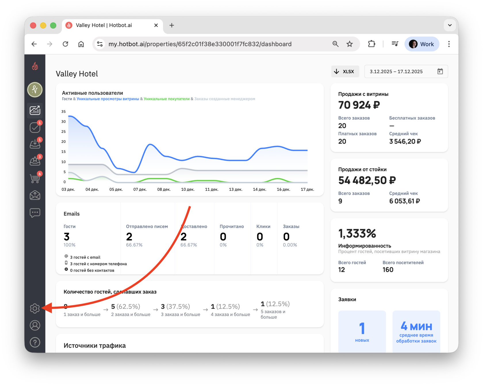 Для перехода к настройкам зайдите в свой личный кабинет на сайте Hotbot.ai или по прямой ссылке my.hotbot.ai.
