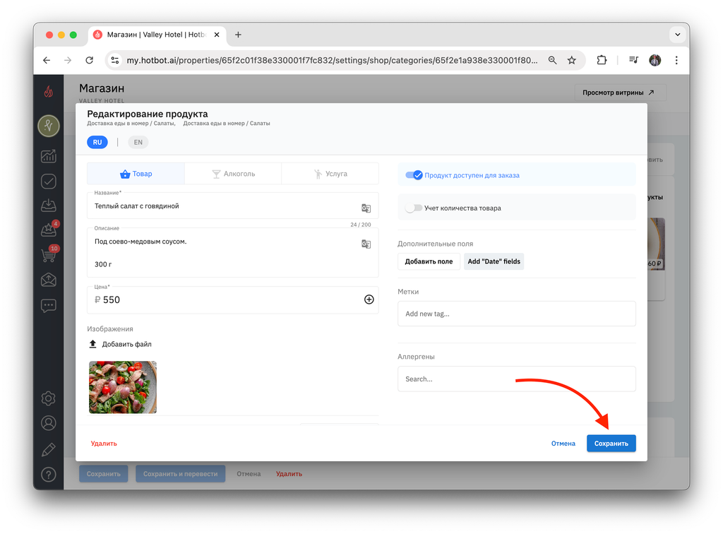 5. Чтобы сохранить внесенные изменения, нажмите кнопку Сохранить