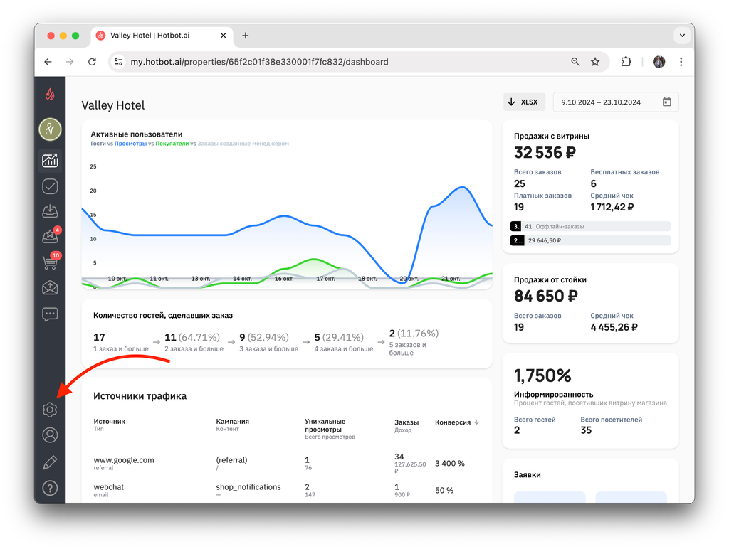Для перехода к настройкам зайдите в свой личный кабинет на сайте Hotbot.ai или по прямой ссылке my.hotbot.ai.