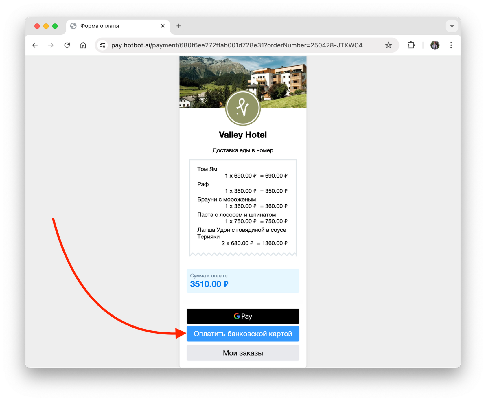 Вы получите ссылку на онлайн-оплату. Если вы находитесь рядом со стойкой, вы можете оплатить заказ с помощью QR-кода