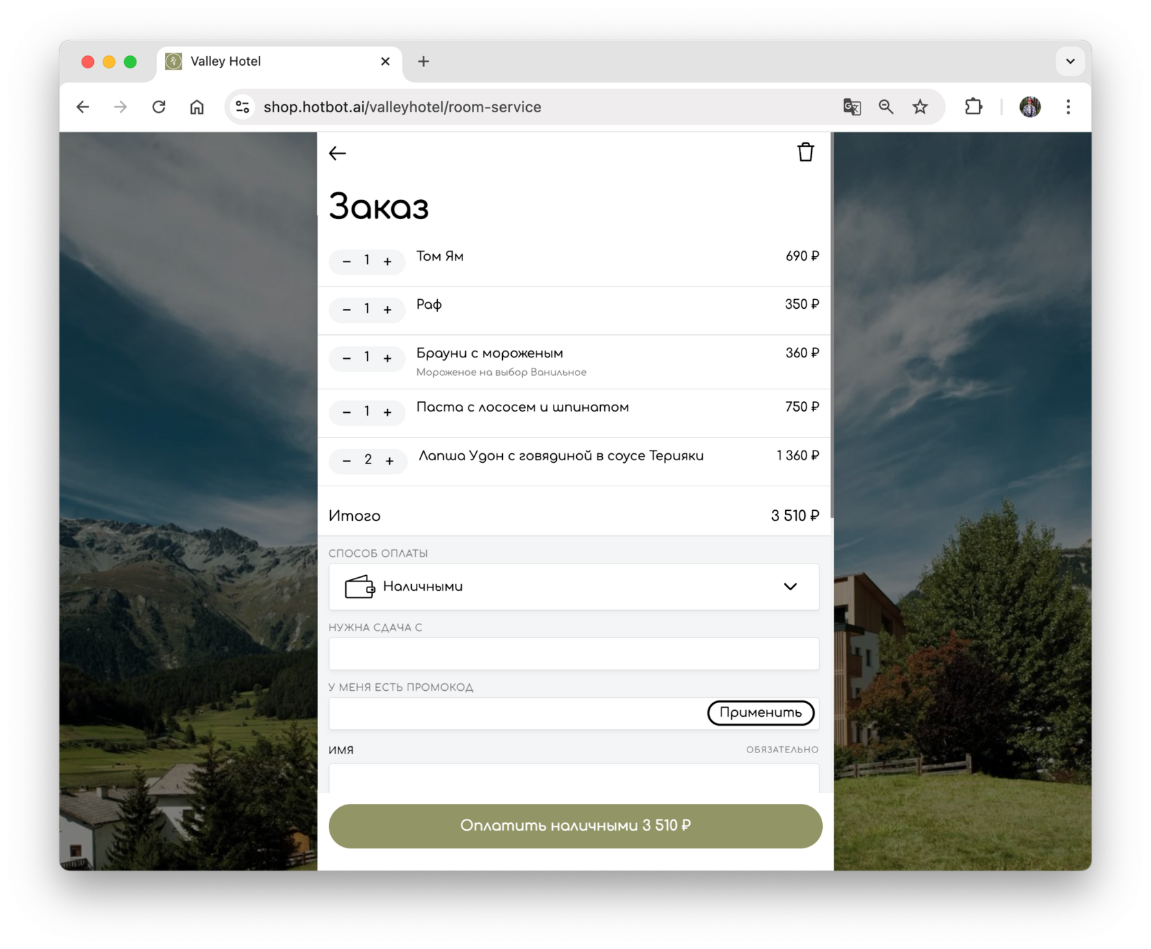В этой статье вы узнаете, как гость оформляет заказ на товары и услуги через онлайн-витрину: от выбора позиций до оплаты заказа.