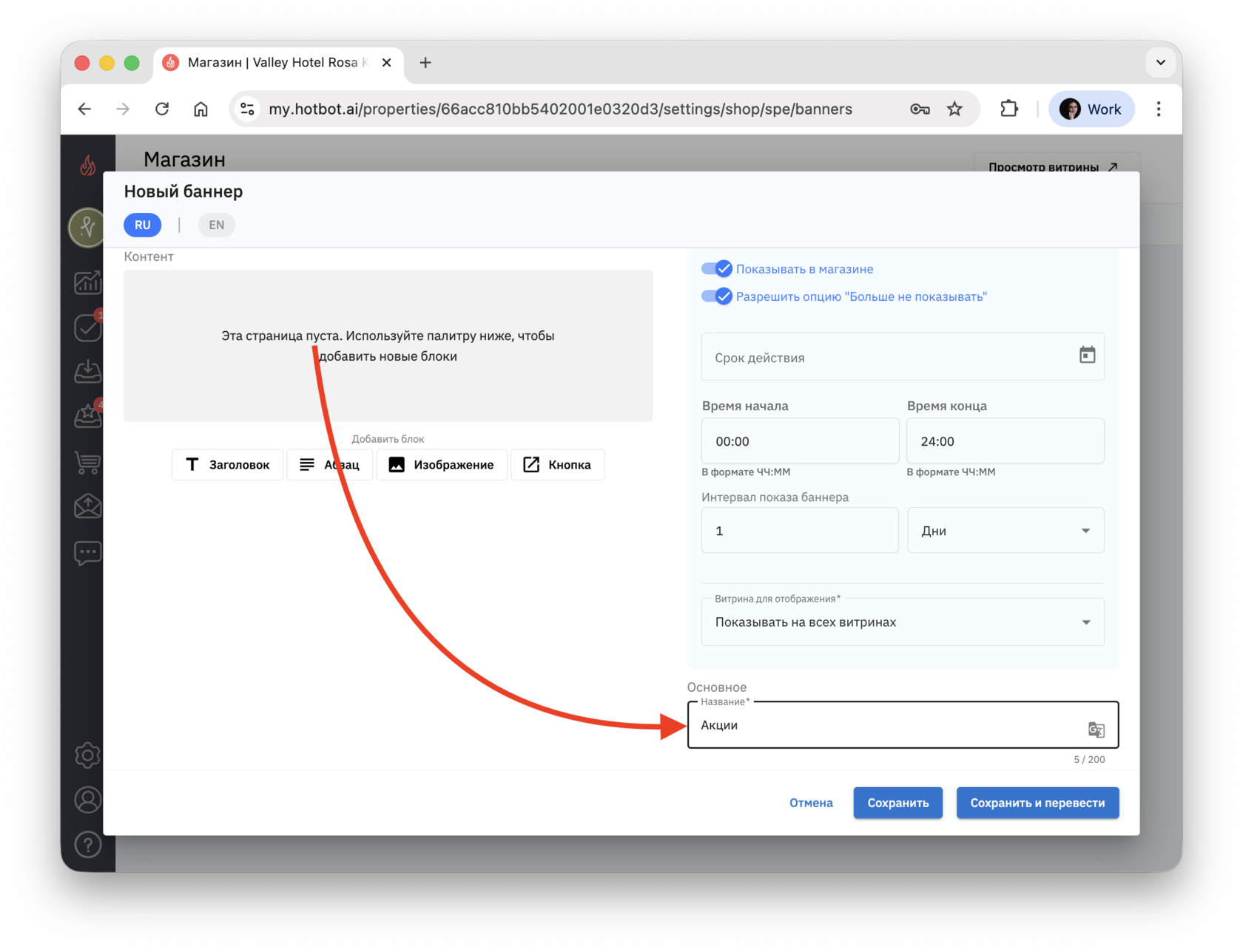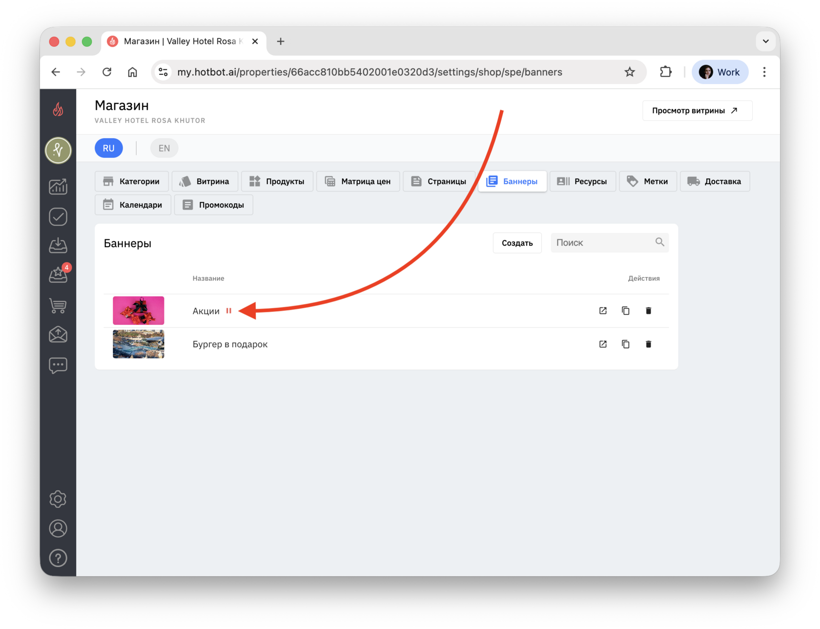 В этой статье вы узнаете, как добавить баннер на витрину вашего отеля.