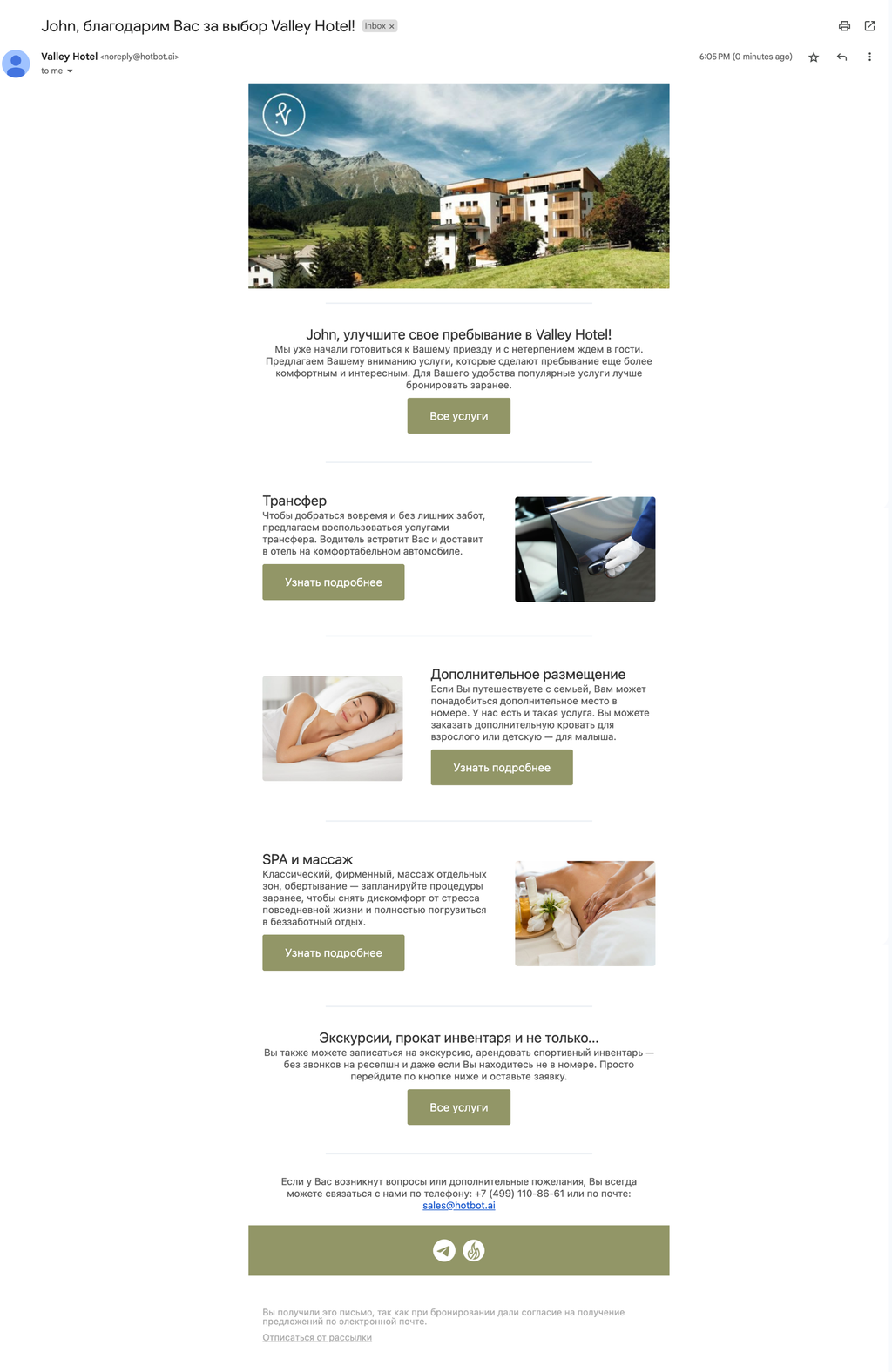- Шапка письма: фото отеля (800×390), без номеров, в едином стиле;