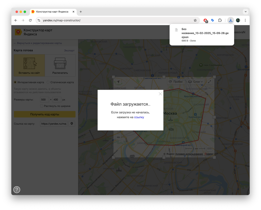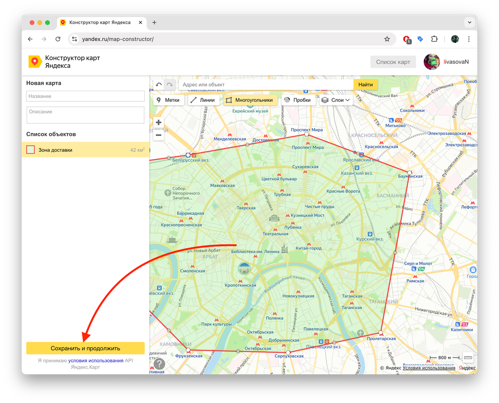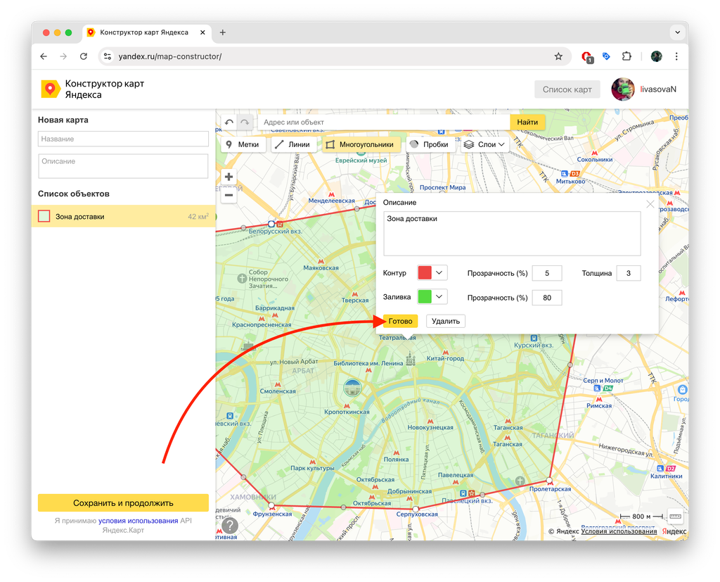 После создания карты необходимо передать файл с зонами доставки менеджеру Хотбот для интеграции.