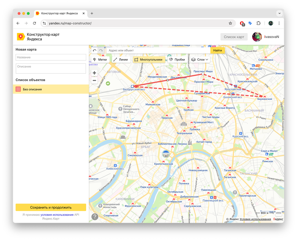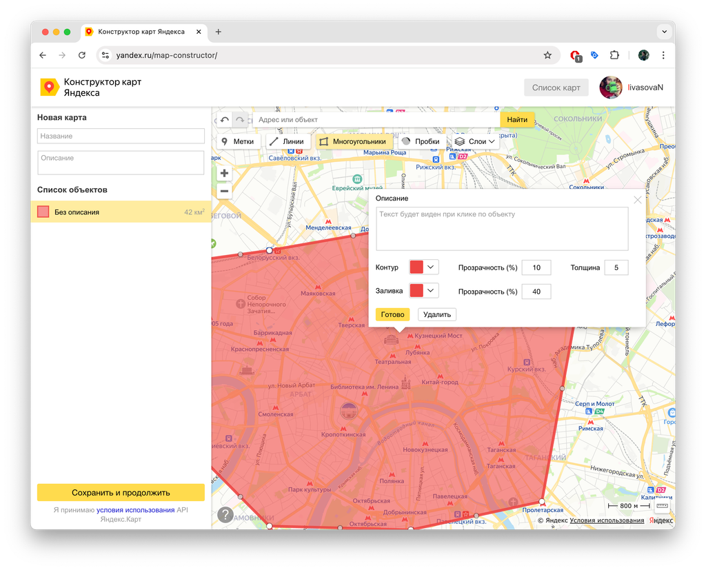 4. Точками последовательно обозначьте границы зоны доставки. Для удобства откройте Яндекс Карты в отдельном окне и перерисуйте границы вручную.
