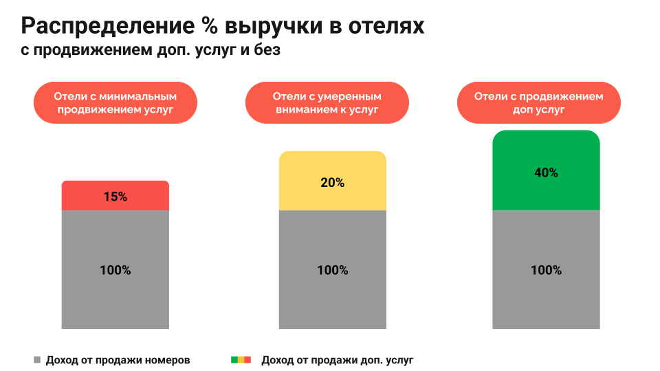 Выручка от предоставления доп.услуг зависит от того, как активно отель их продвигает.
