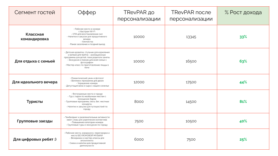 - гости охотнее платят за персонализированные предложения;