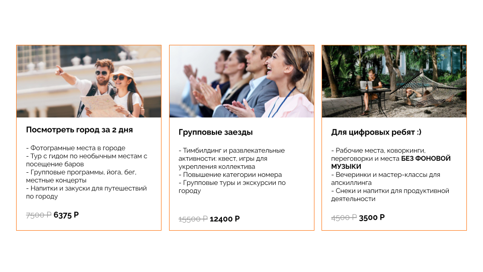 Шаг 2. Создавайте персонализированные предложения. Для каждого сегмента формируйте пакеты услуг, которые решают их конкретные задачи. Так вы будете продавать не больше, а умнее. Используйте текущий трафик, но предлагайте гостям то, что им действительно нужно. Это проще, чем искать новых клиентов, и выгоднее, чем снижать цены.