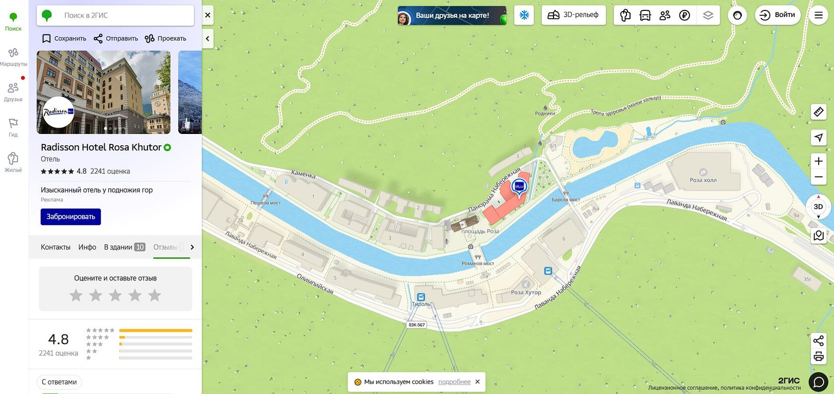 Radisson Hotel, Rosa Khutor работает на курорте с плотным потоком гостей. Рядом много сильных игроков. Отелю важно держать оценку на картах и собирать больше отзывов.